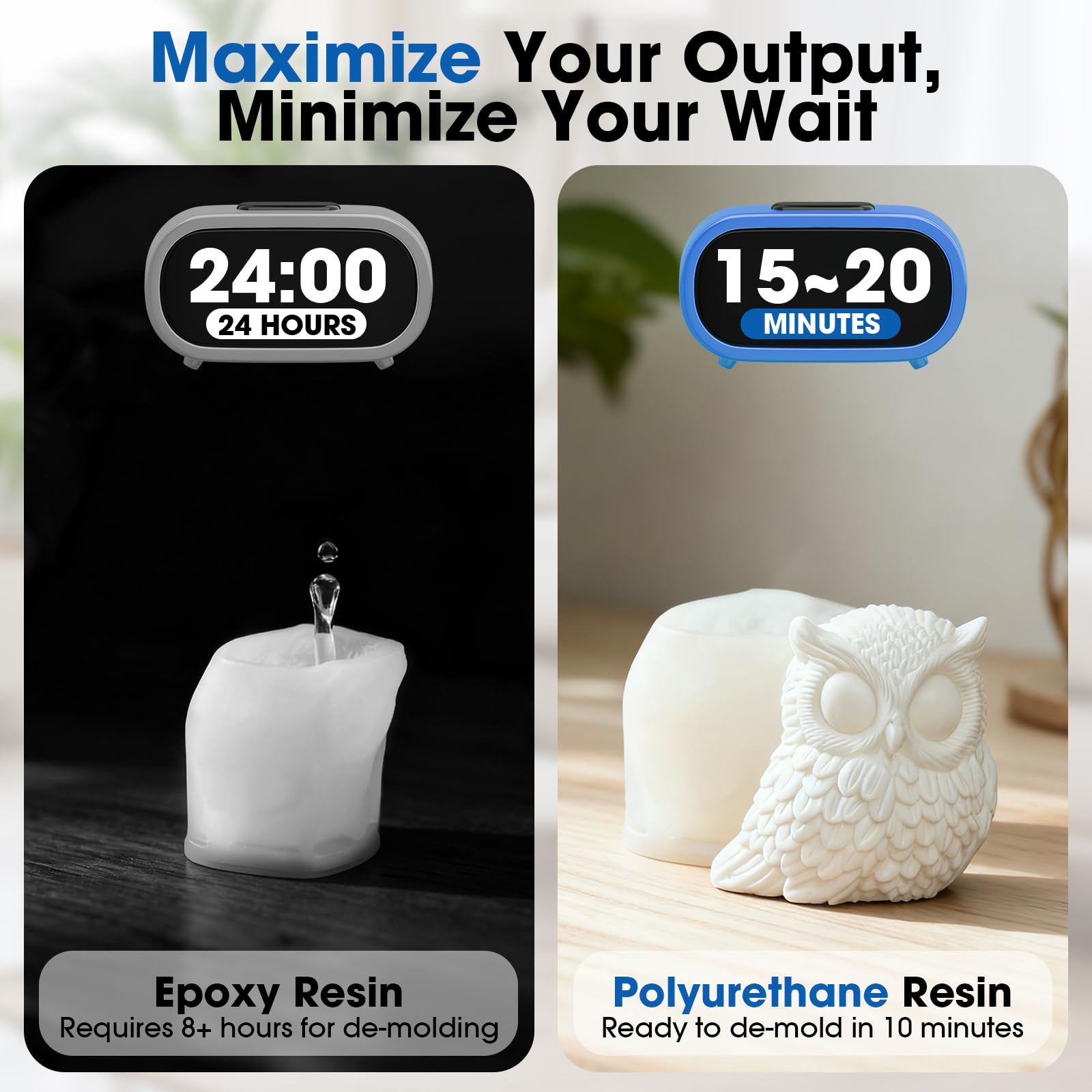 Accelerate Your Creativity. Why wait around? Pourpals’ fast-cure formula lets you demold in just 10–15 minutes (a quick 10-second stir, then 10-minute cure). Now you can easily batch-produce multiple pieces in a single afternoon.