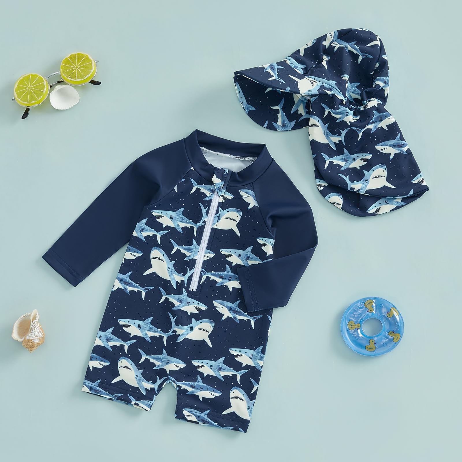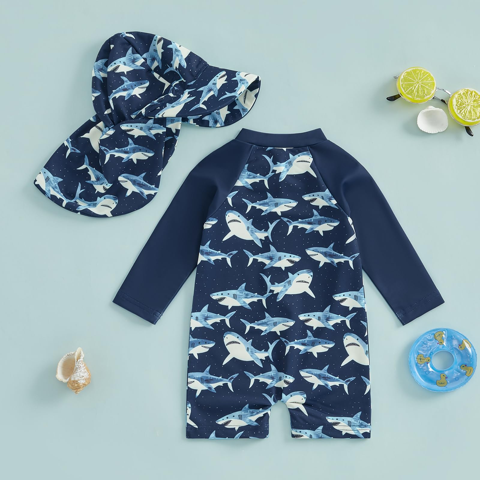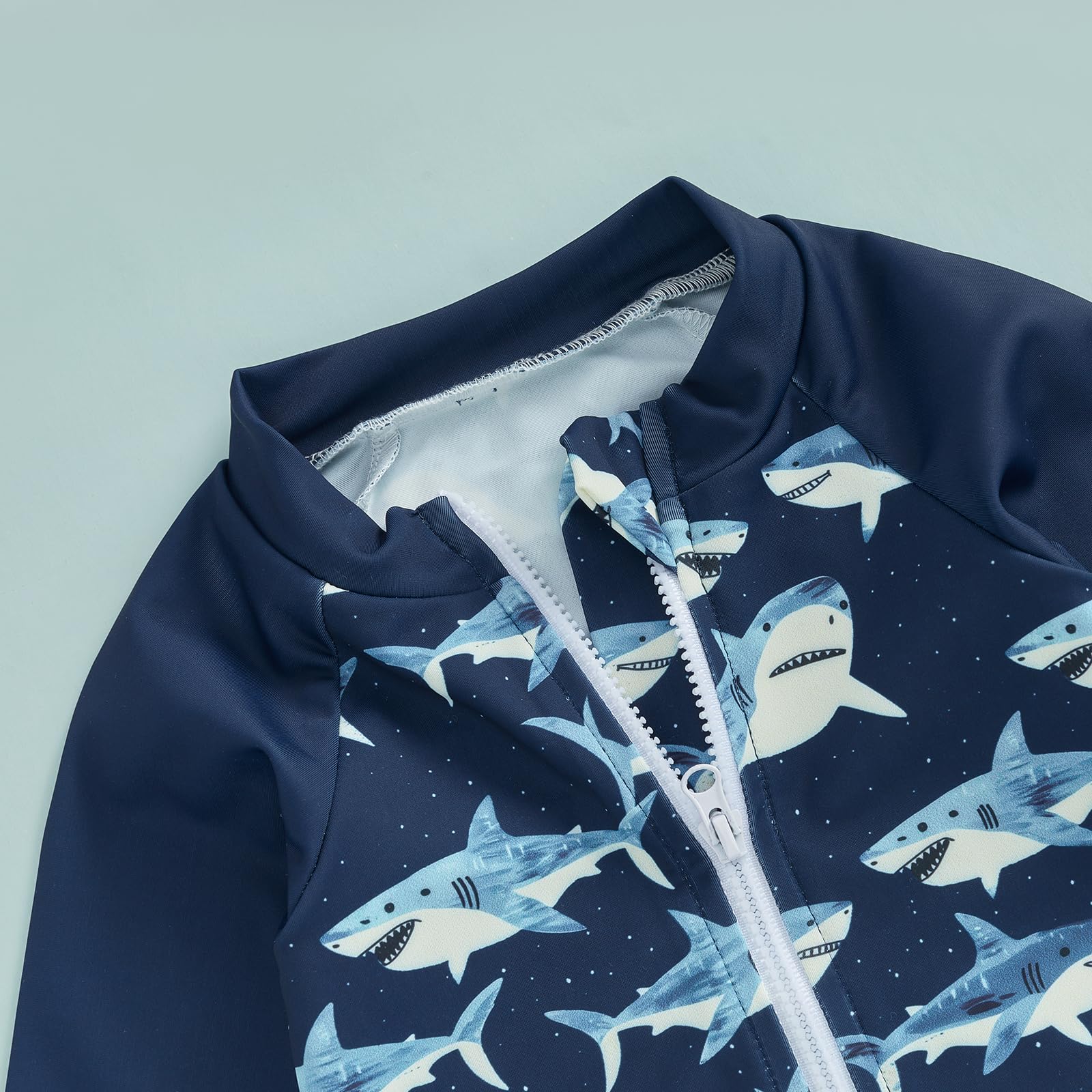 Design: Toddler bathing suit boy, infant long sleeve swimsuit boy, round neck, back/front zipper closure for easy on and off, newborn swimsuit boy, dinosaur/marine animal print, super cute and lovely, your little boy will stand out in the crowd