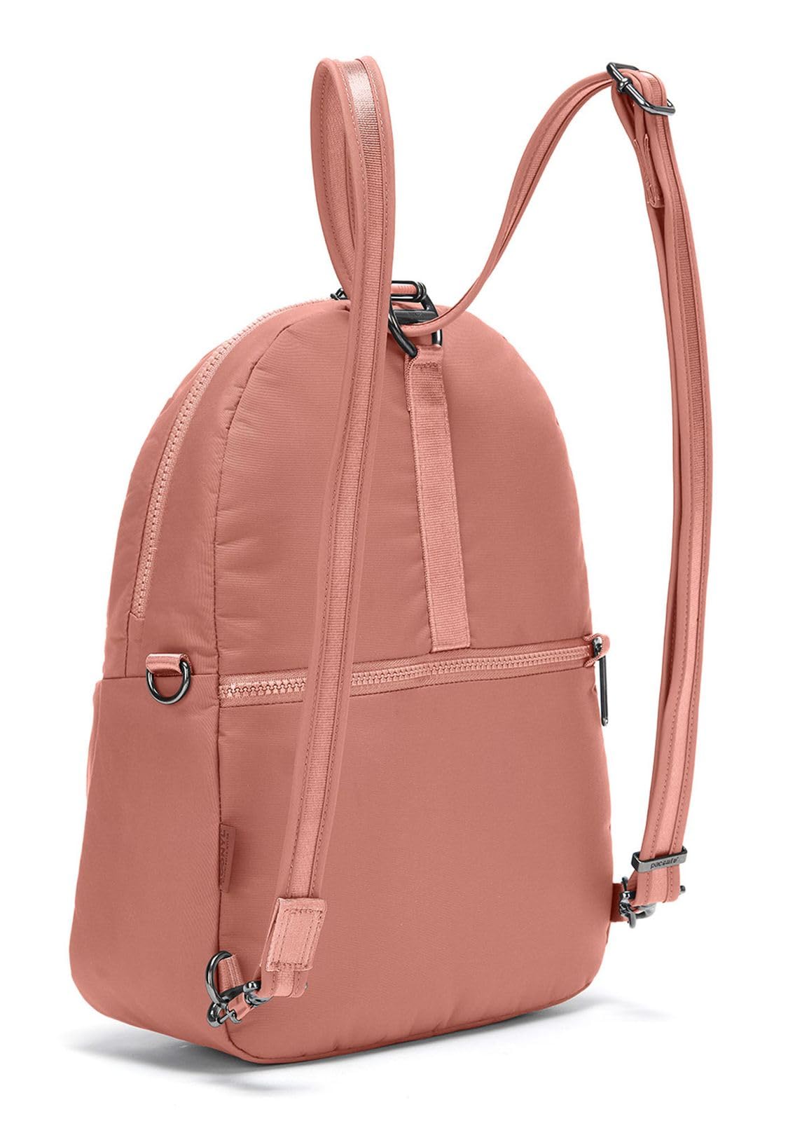 DIMENSIONS, WEIGHT & WARRANTY - 13.4"H x 10.2"W x 4.7"D, 0.99 lbs. Made of soft, durable, water resistant and easy to clean ECONYL regenerated Nylon and recycled Polyester to ensure long-lasting usage everyday. Comes with a 5-year Pacsafe warranty.