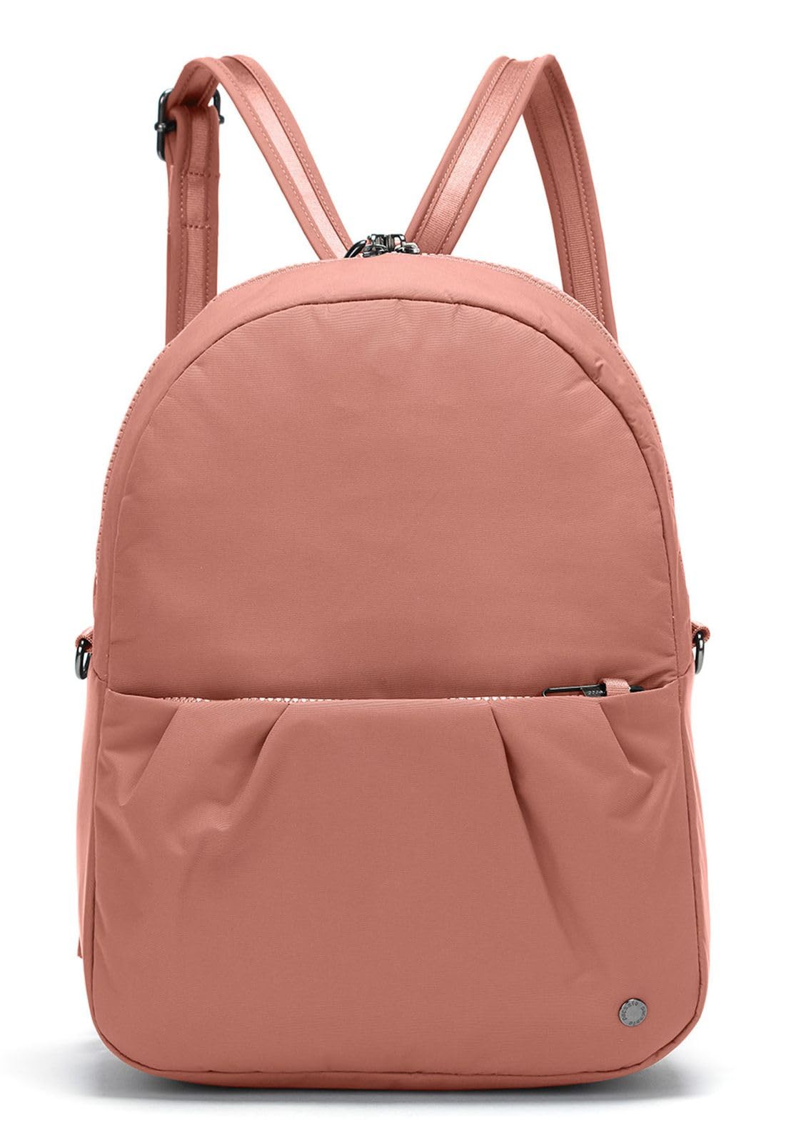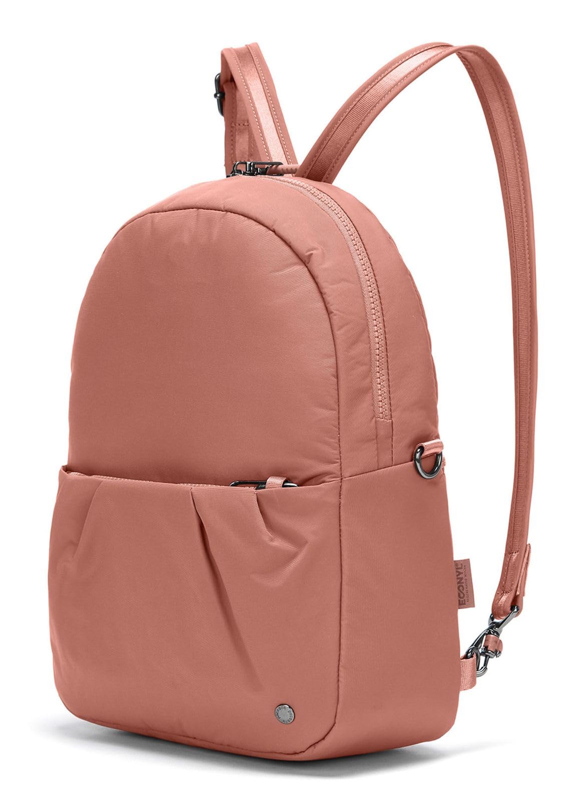 Description Two stylish anti-theft bags in one - the convertible design can be worn as a backpack or folded down to a handbag. There’s room for a wallet, makeup bag and more, with anti-theft security to protect your valuables. Made with ECONYL® regenerated nylon.