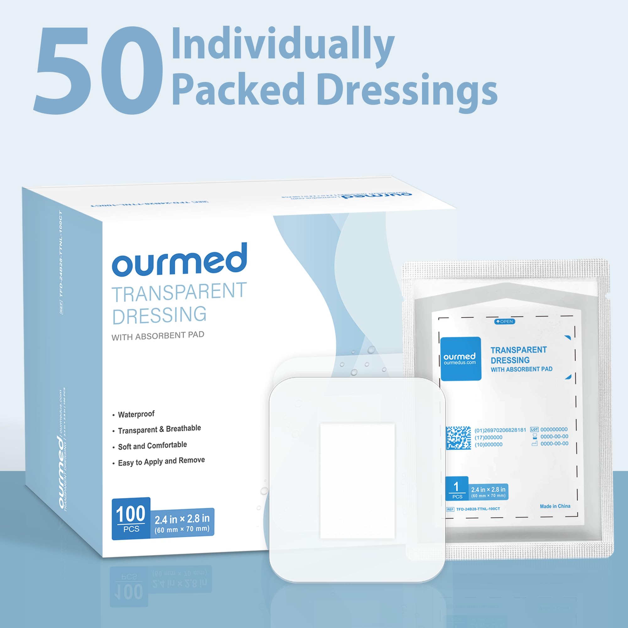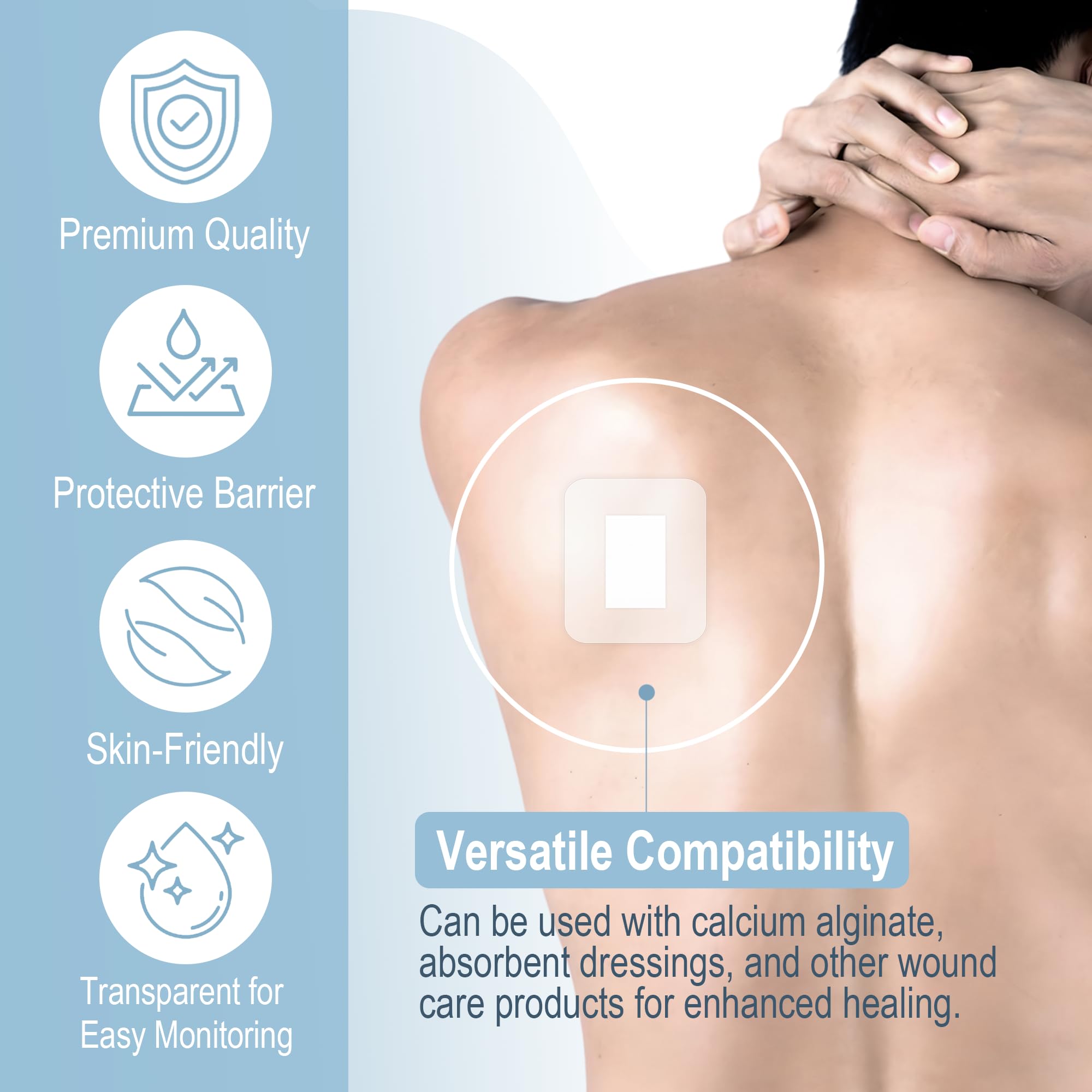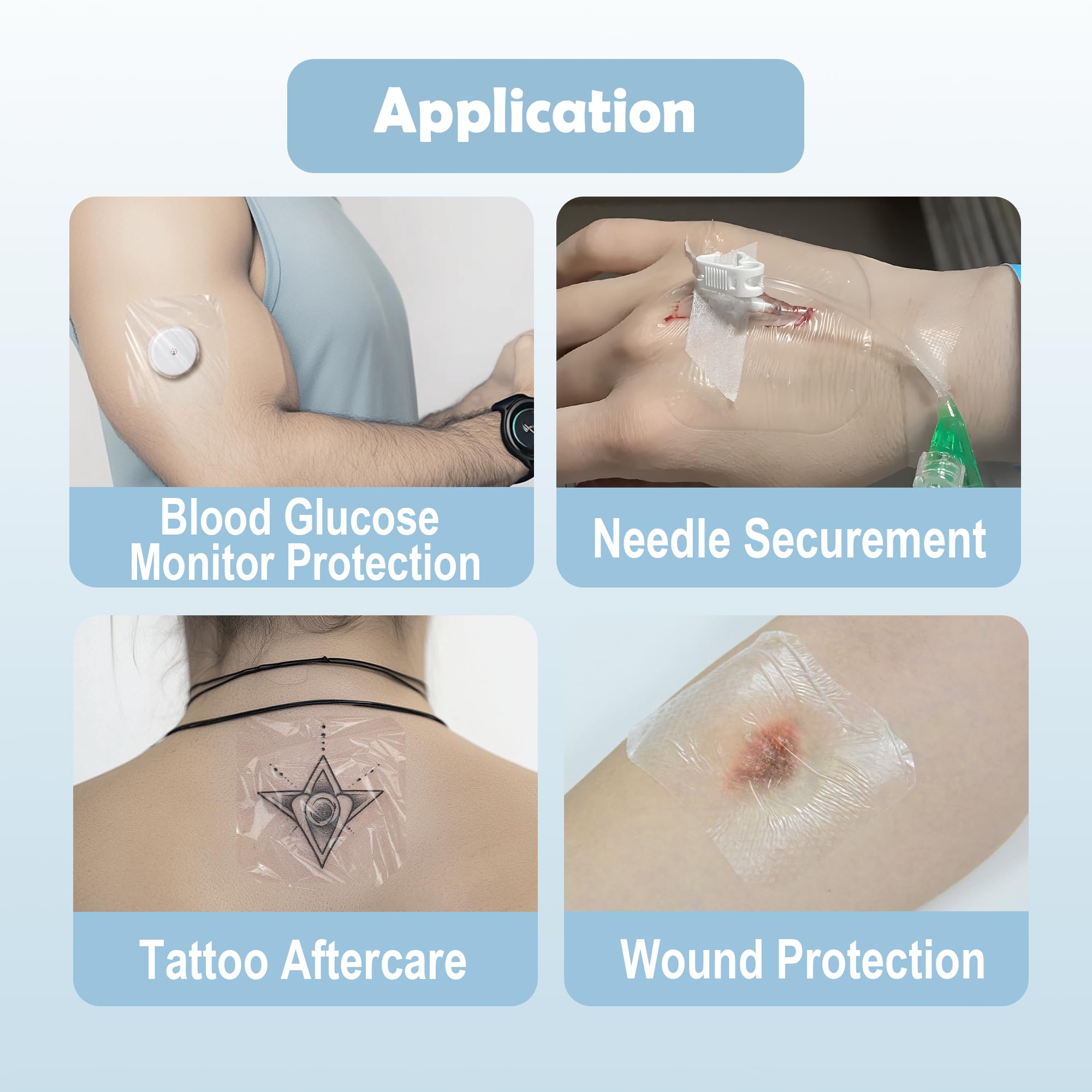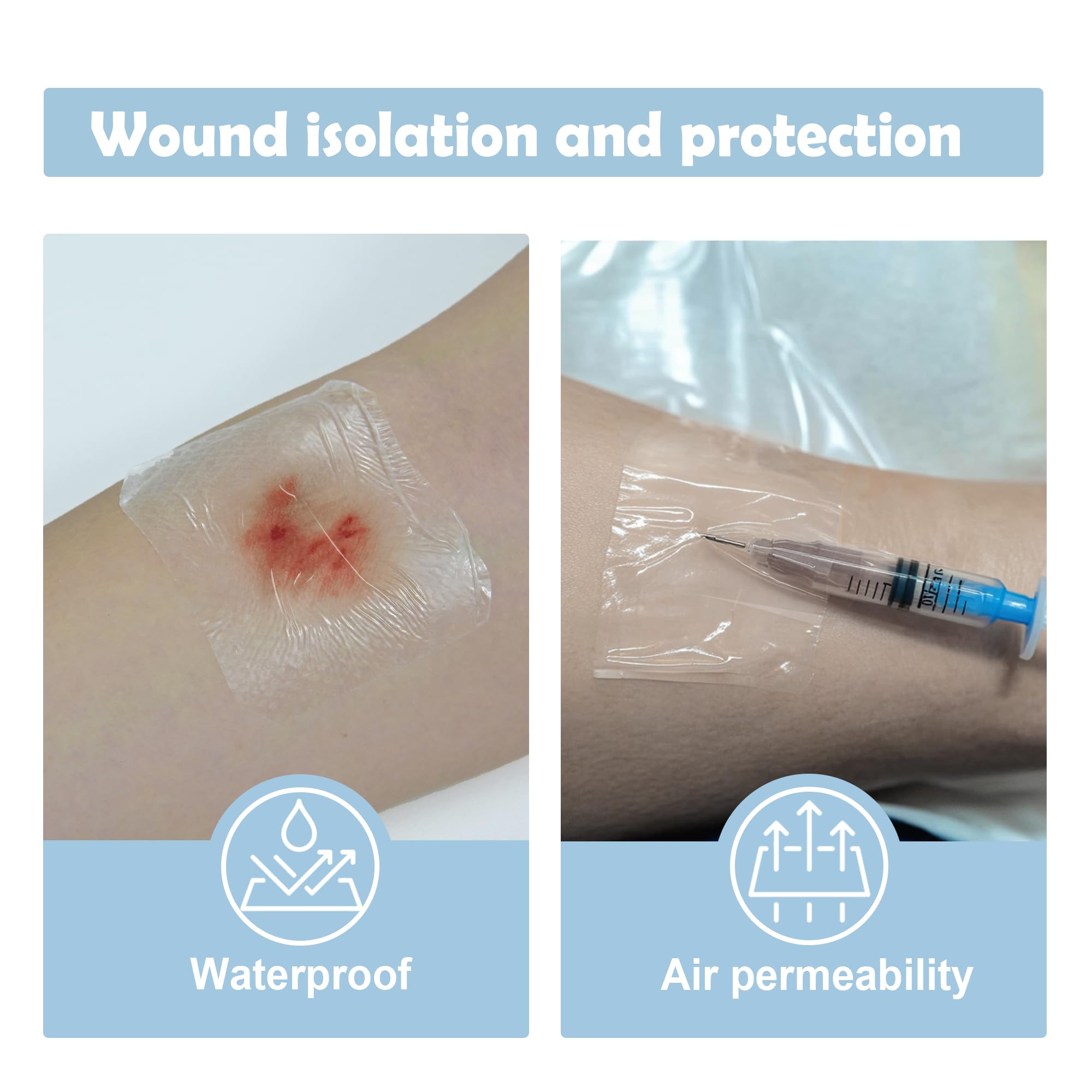 Hypoallergenic Materials: Made from high-quality transparent and breathable polyurethane film, this dressing is latex-free and hypoallergenic, ensuring a skin-friendly experience for all users, even those with sensitive skin.