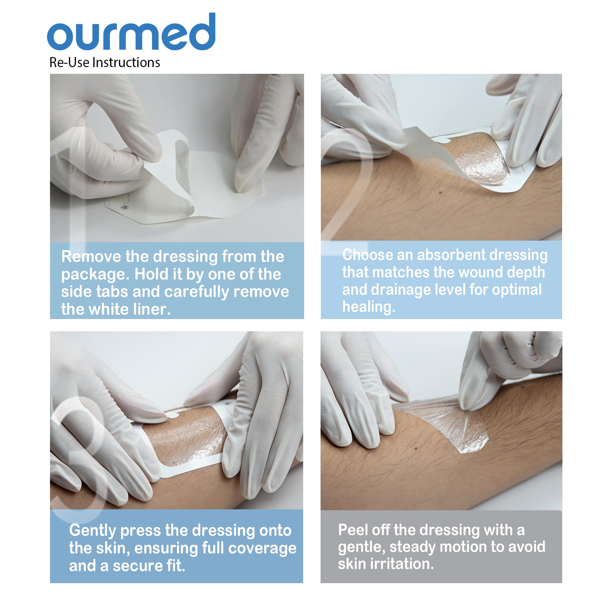 Usage Tips: please avoid direct application an open, excuding wounds. Place a gauze pad over the wound before applying the film dressing. This ensures optimal wound care and protection with clear observation.