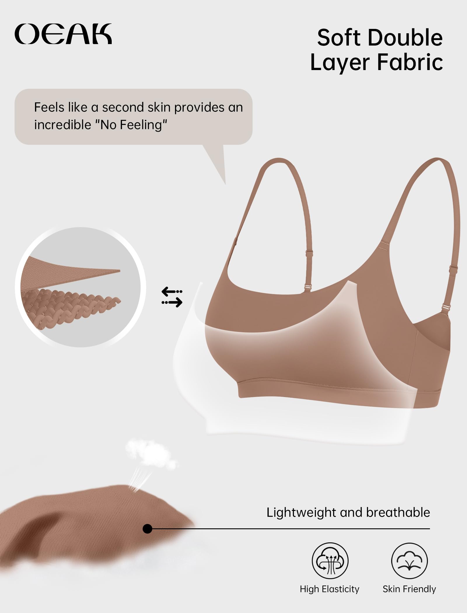 No Wire & No Padding Bras: 76% Polyamide and 24% Elastane. This cami bra is crafted from comfortable and moisture-wicking material that keeps you cool and comfortable. Its touch is buttery soft and smooth, the 4-way stretch fabric provides a 'no-feeling' sensation while offering gentle support for all-day comfort.