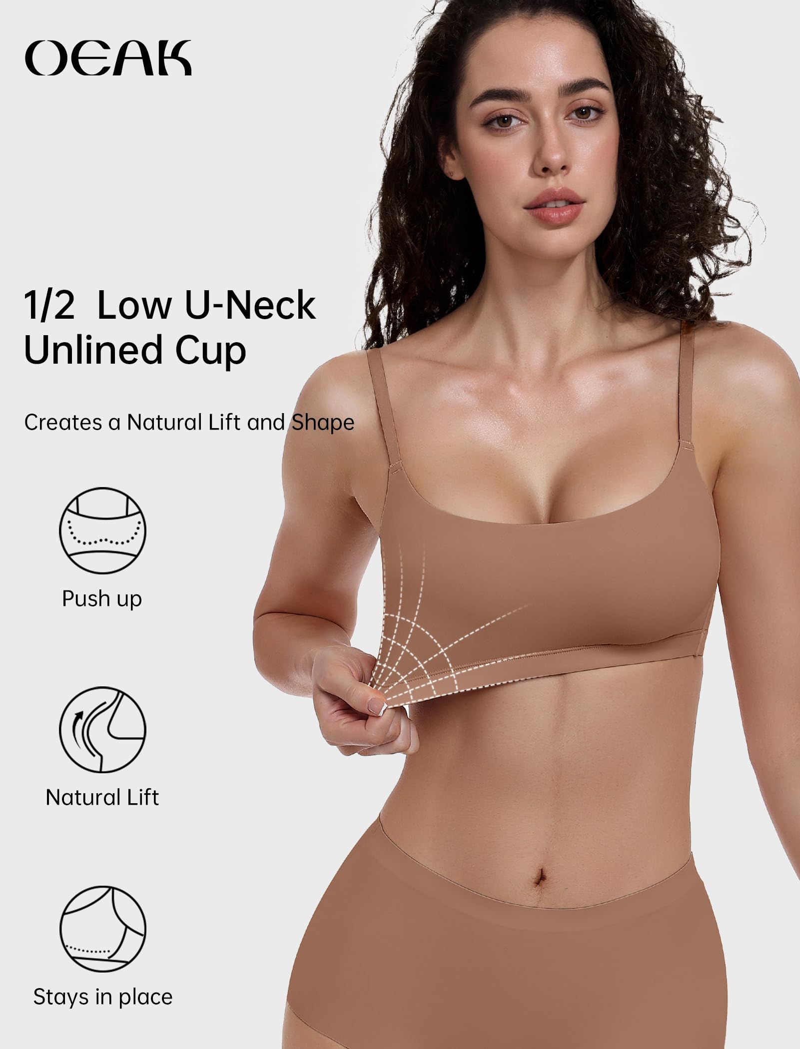 Sexy U-Neck Cami Bras: The low U-neck design offers just the right coverage—shaping without over-concealing, while preventing overflow for a naturally enhanced look. The pull-on back and wide side design wrap your side breasts and back fat, creating a seamless, effortless silhouette. It stays perfectly invisible under clothing.