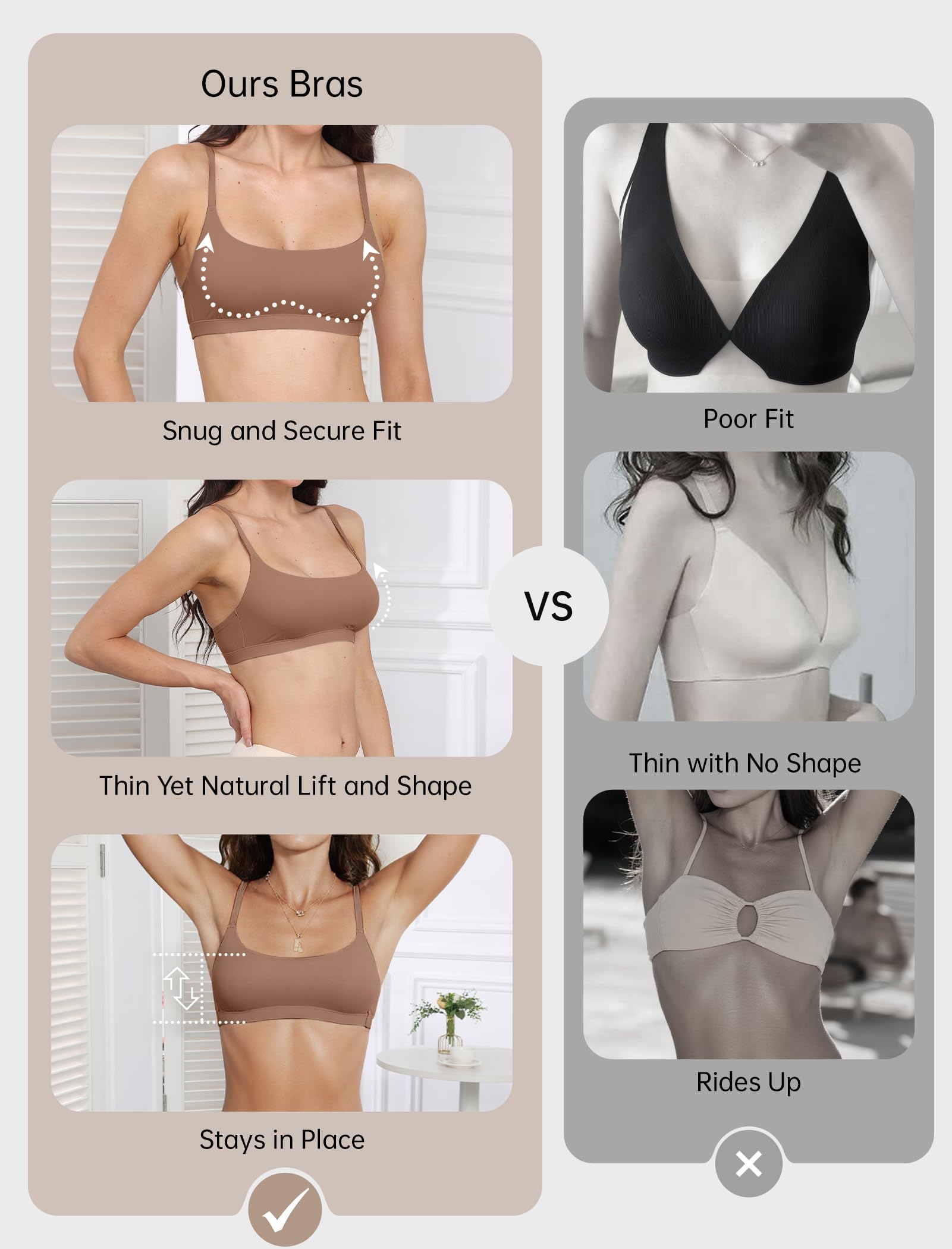 Lightweight Lifting Bras: This seamless bralette features a dual-layer cup design for lightweight yet light support, it provides a natural shape and a second-skin feel—perfect as a no pads sleep bra, an everyday bra, a yoga bra, a t-shirt bra, or a minimizing bra.