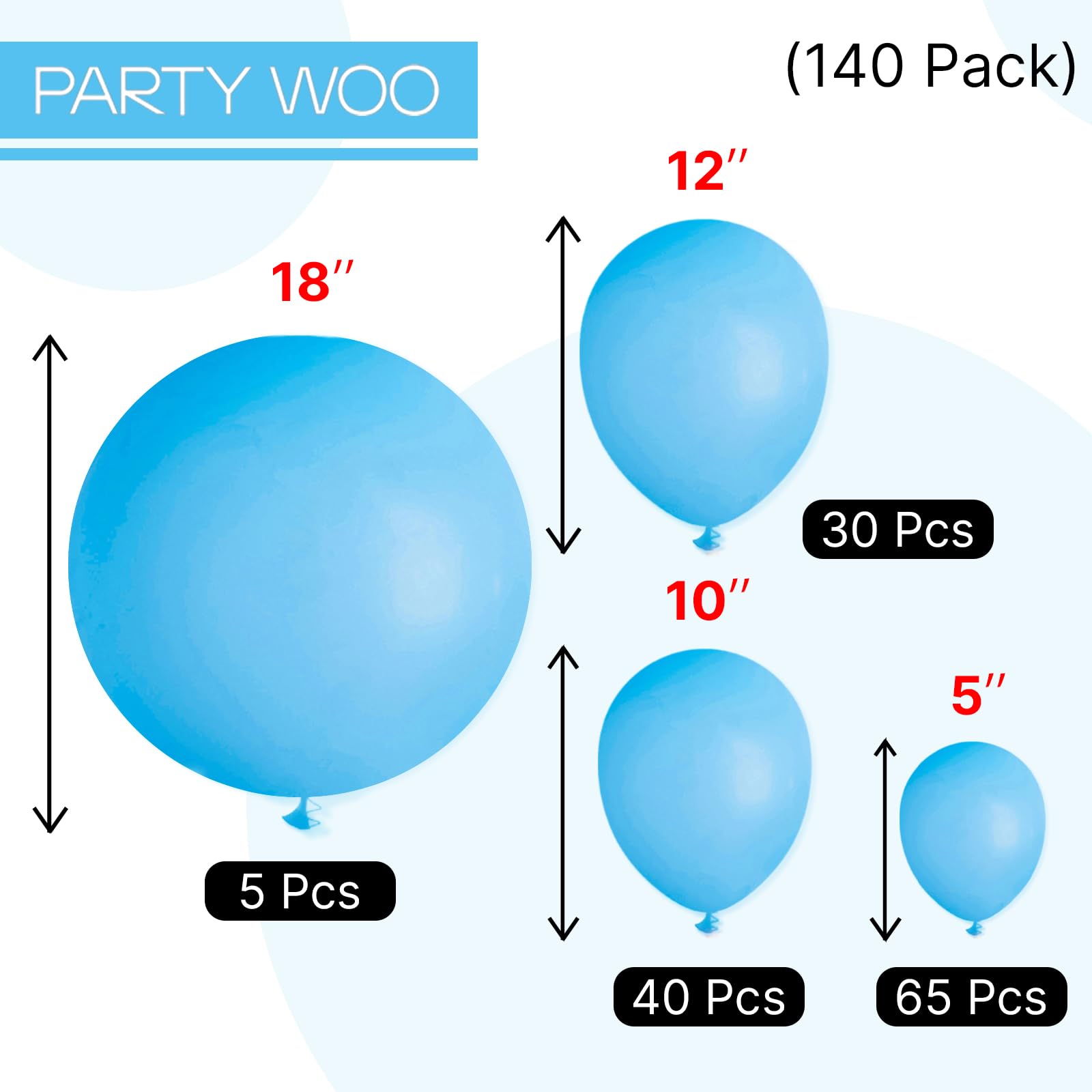 Package includes: 18 inch light blue balloons (5 pcs), 12 inch light blue balloons (30 pcs), 10 inch light blue balloons (40 pcs), 5 inch light blue balloons (65 pcs), pay attentions that the 5 inch balloons could NOT float when inflated with HELIUM.