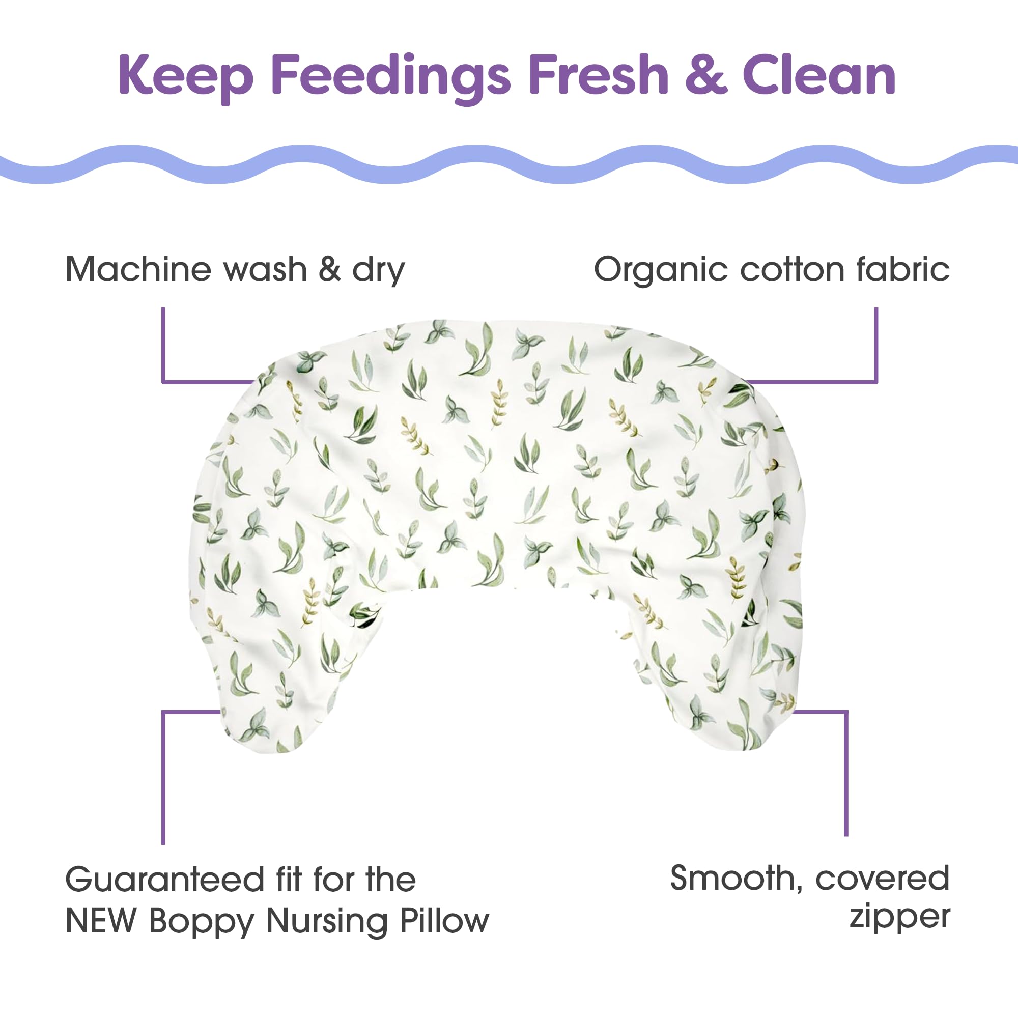 Our 100% organic cotton fabric pillow cover wraps your Updated Boppy Nursing Pillow in natural comfort thatβs soft for you and babyβs skin. Thoughtfully designed for easy cleaning (because life with baby is beautifully messy) and quick style changes when you need a fresh look. Machine washable and dryer-safe, itβs ready to handle whatever your day brings (spit-ups, weβre looking at you). Plus, the custom fit means it hugs every curve of the Updated Boppy Nursing Pillow perfectly, keeping you and baby comfortable in every feeding position.