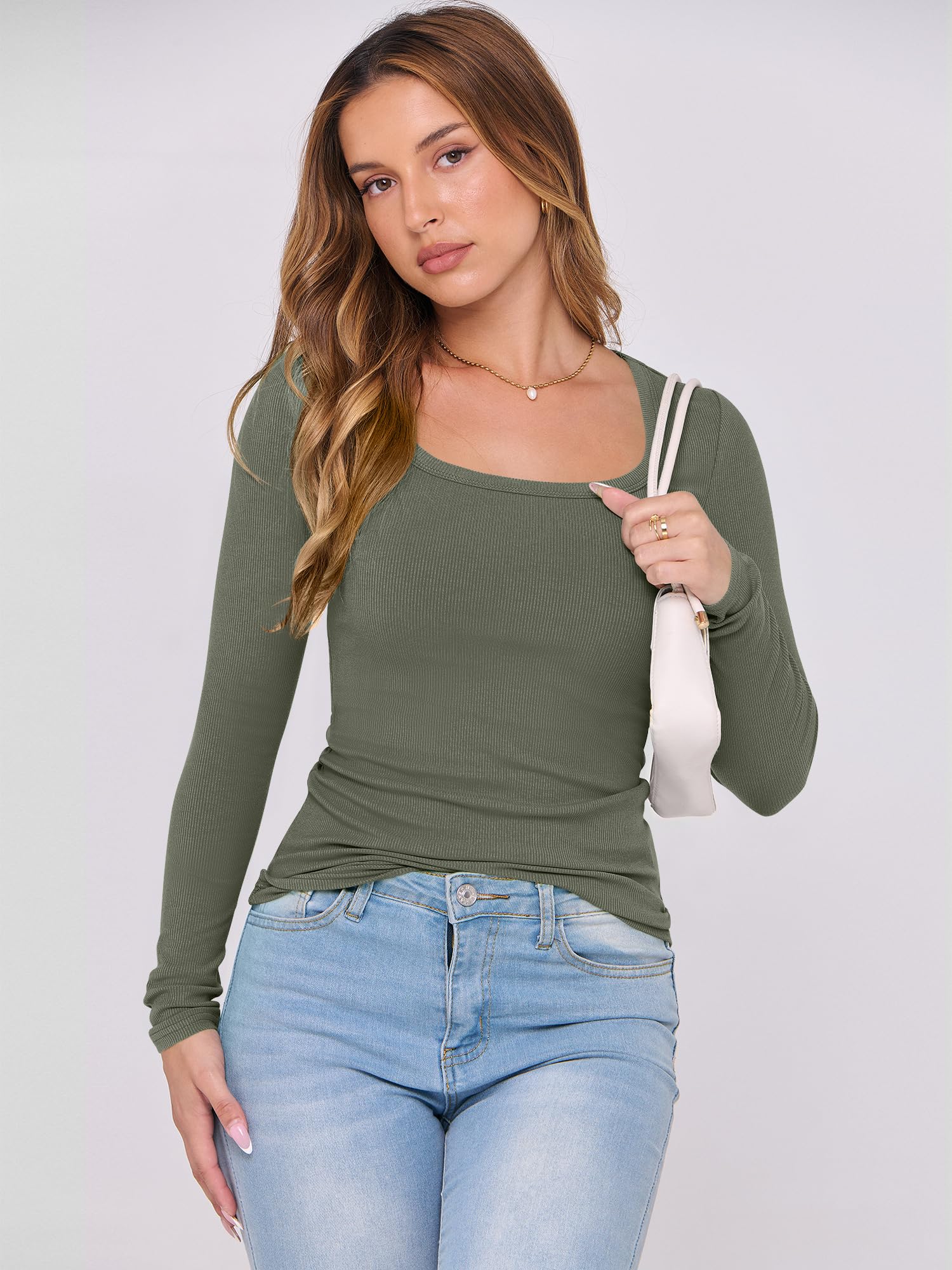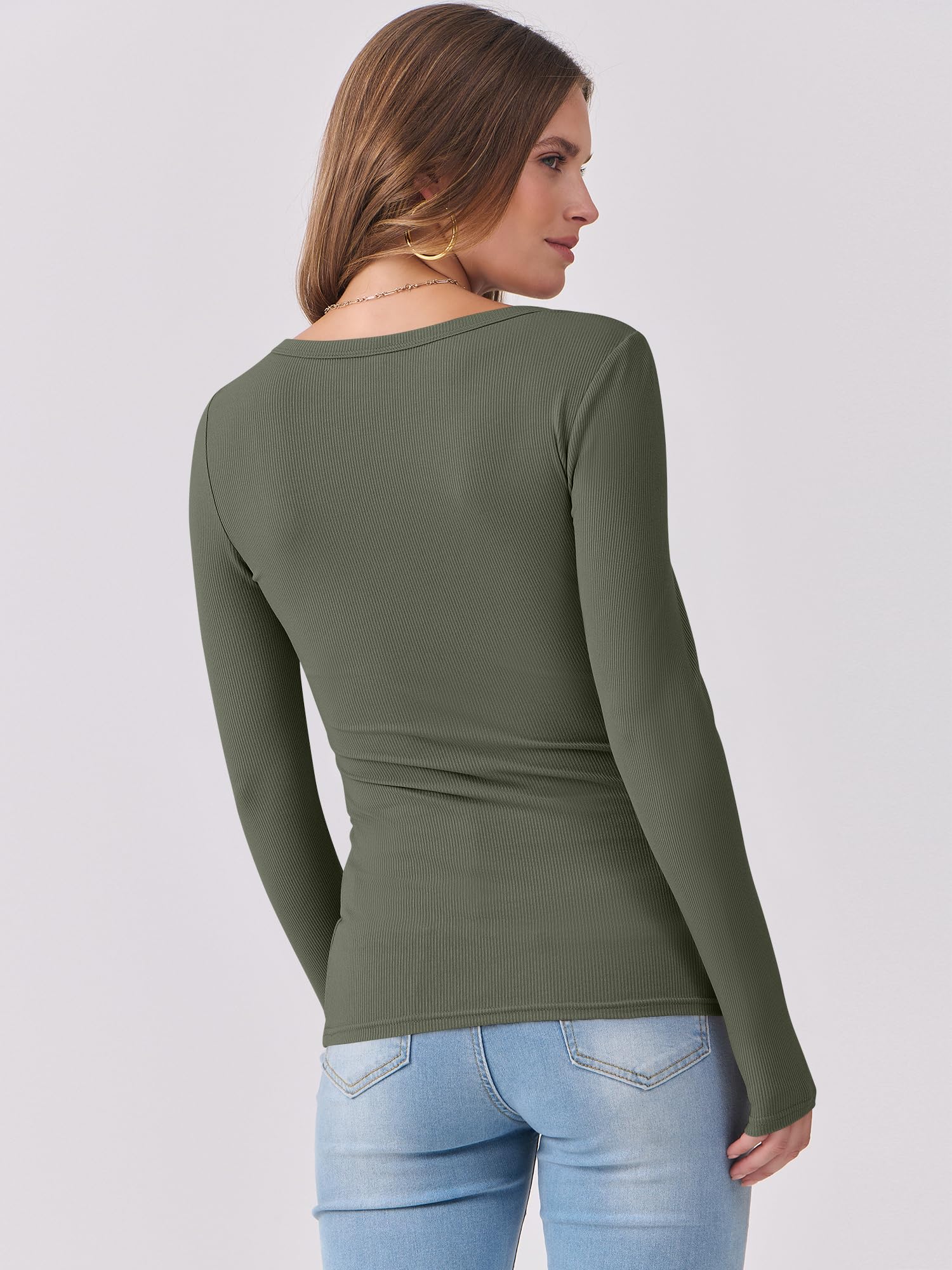 Features - Women's long sleeve shirts, scoop neck, ribbed knit, casual sytle. This women's basic top perfect for daily wear, work, gonging out, vacation.