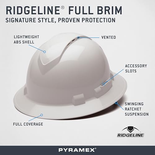 Pyramex Ridgeline Hard hats are constructed with ABS material to provide a strong hat with a lightweight fit. The ratchet suspension is easy to adjust which allows you to modify the fit while wearing the hat. The 4 point ratchet suspension is easily converted to a 6 point suspension with an optional strap (HP6PTSUS) sold separately. The sweatband is made of padded fabric and polyurethane foam and can be replaced. The Ridgeline hard hats passes HT high temperature and LT low temperature ratings. The hi vis colors available have been tested for the HV marking.