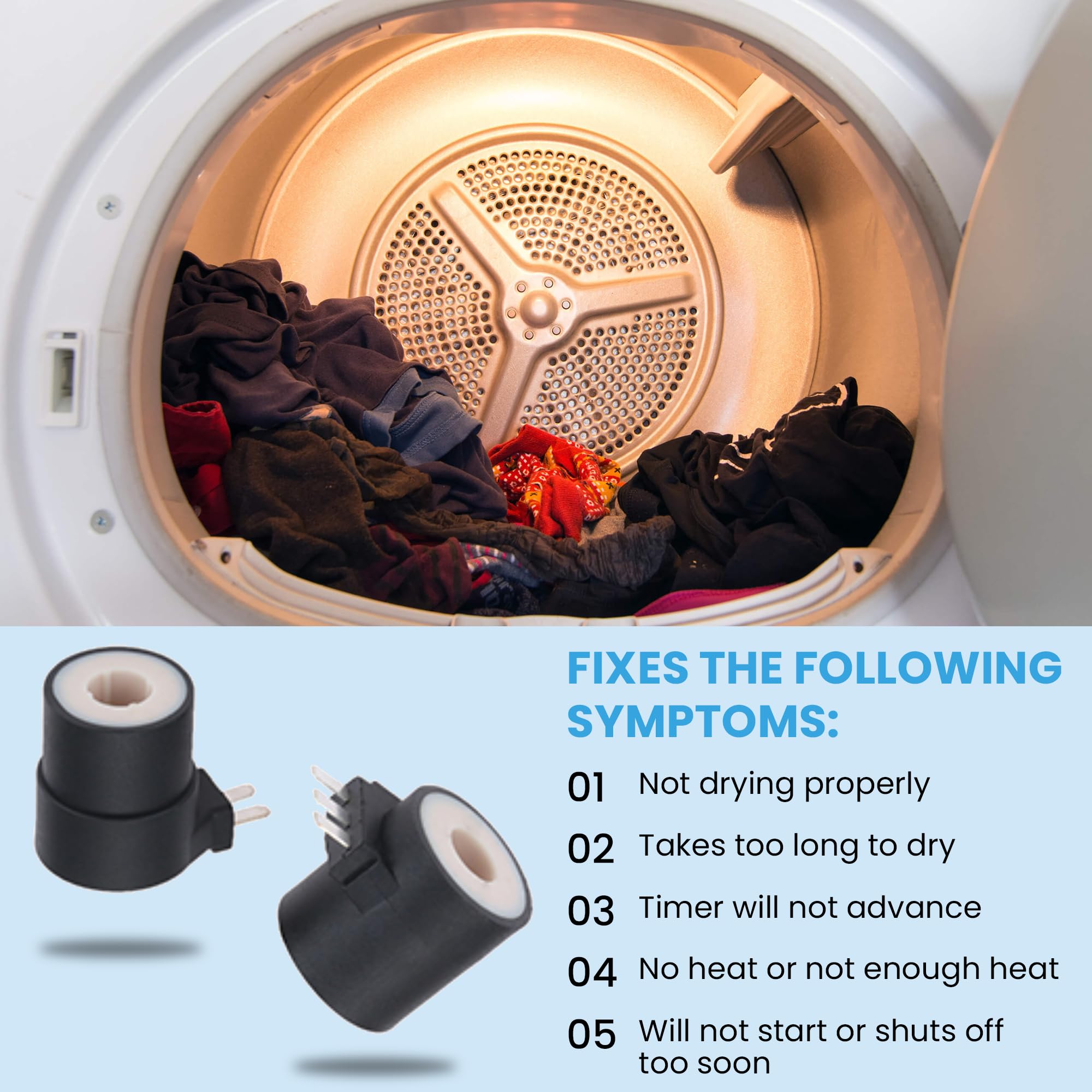 SAFE INSTALLATION: Please power off before installation,Solve Many Types of Dryer Fuse Problem - no heat or insufficient heat; it takes too long to dry; turned off too quickly; doesn't start; too hot; the timer does not advance. Warm Tips - A thermal fuse is a disposable item, and must be replaced with a new, once it blown. To keep your security, please wear working gloves and cut off the power of the dryer when installing