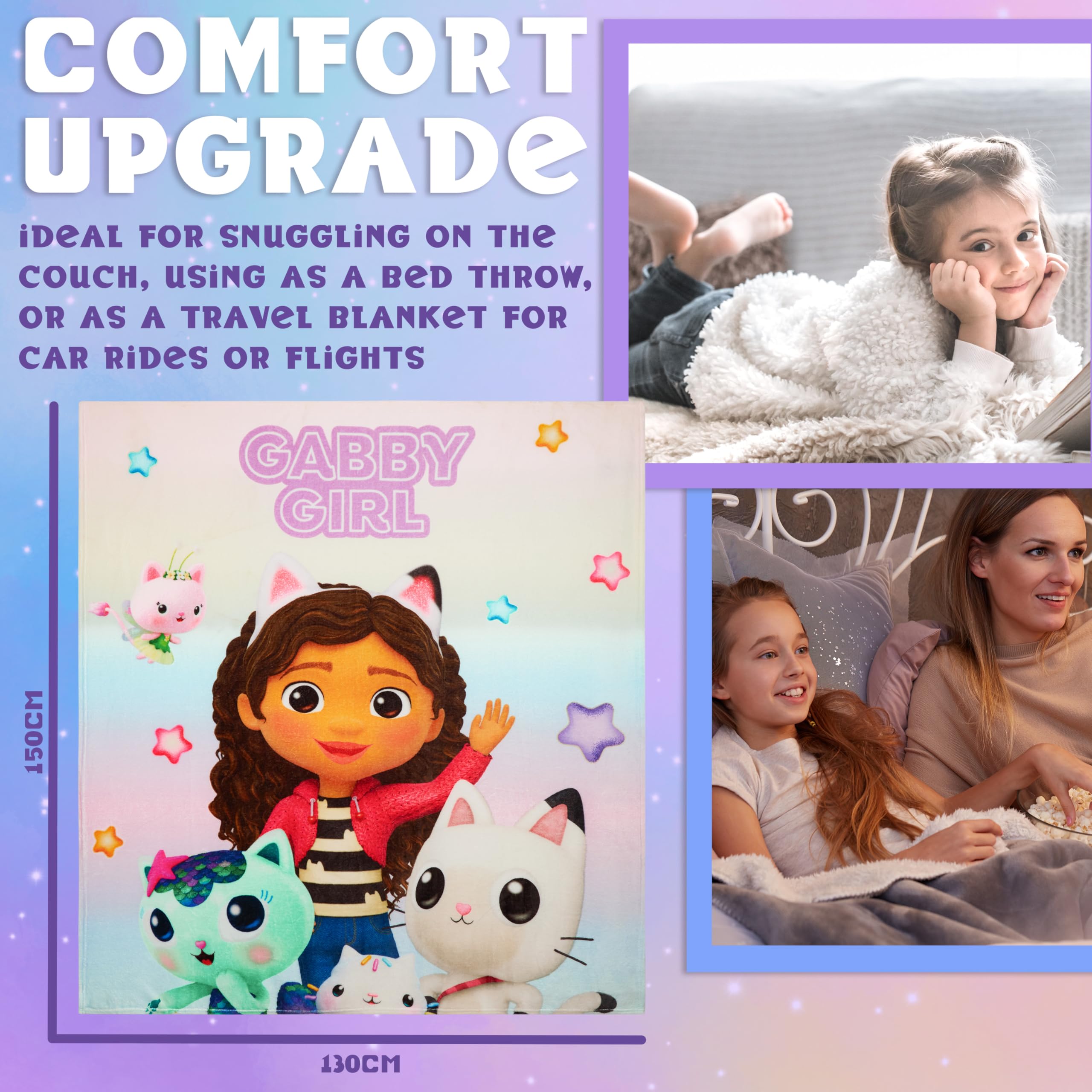 Super Soft Fleece - Crafted from ultra-soft fleece, this gabby dollhouse blanket for girls provides a warm and comforting feel. Measuring 59.1” x 51.2”, this kids blanket is perfect for snuggling and cozy during those chilly nights
