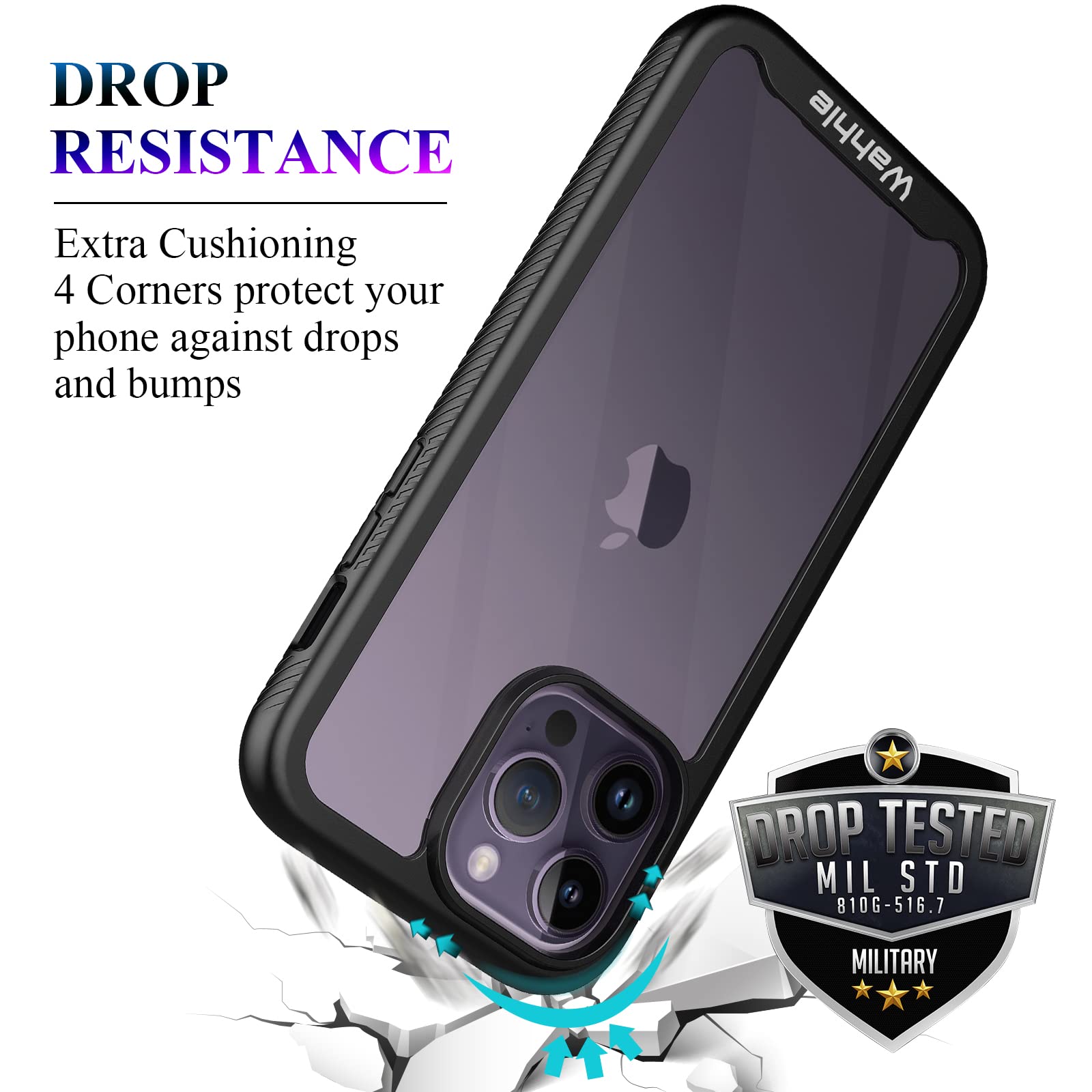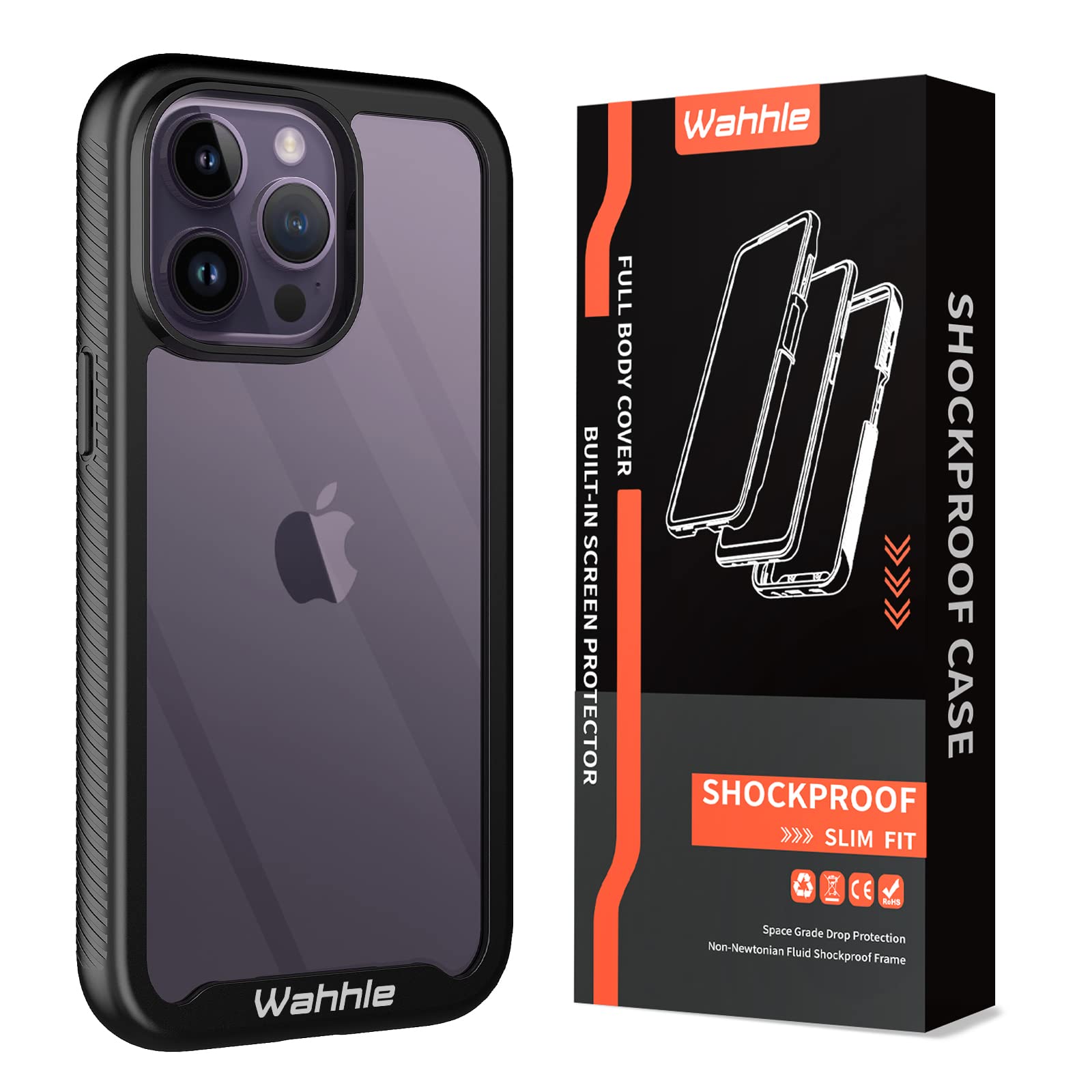 【Premium Texture and Durable Case】Our Wahhle Case fit for iPhone 14 Pro Max 6.7 inches,, the design is inspired by ergonomics, the matte surface and elegant curves make it more comfortable and firm to hold when you use it. Black + Clear colors perfectly fit for your phone , both men and women can use. Package Include : 1 * Case with built-in screen protector ( front and back).