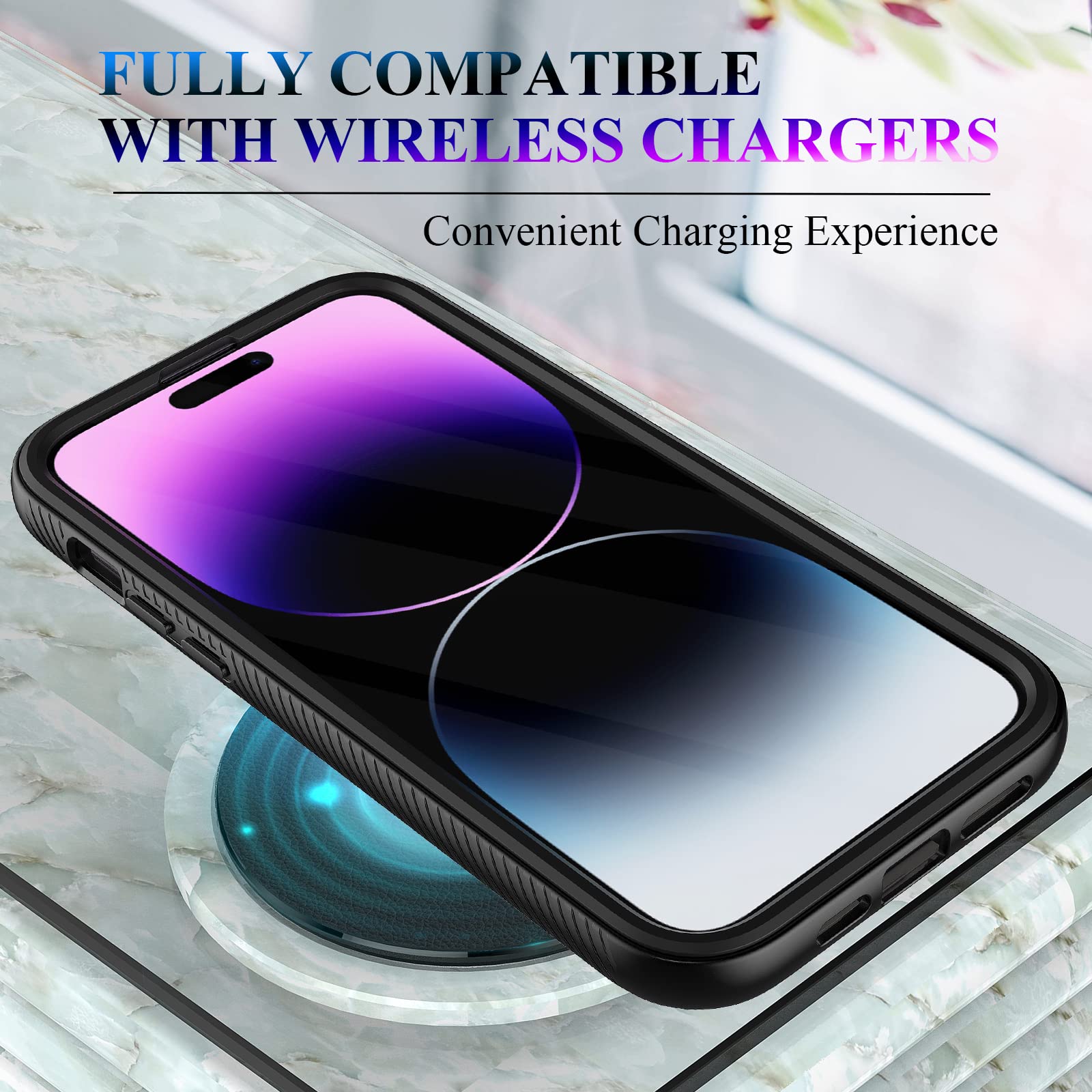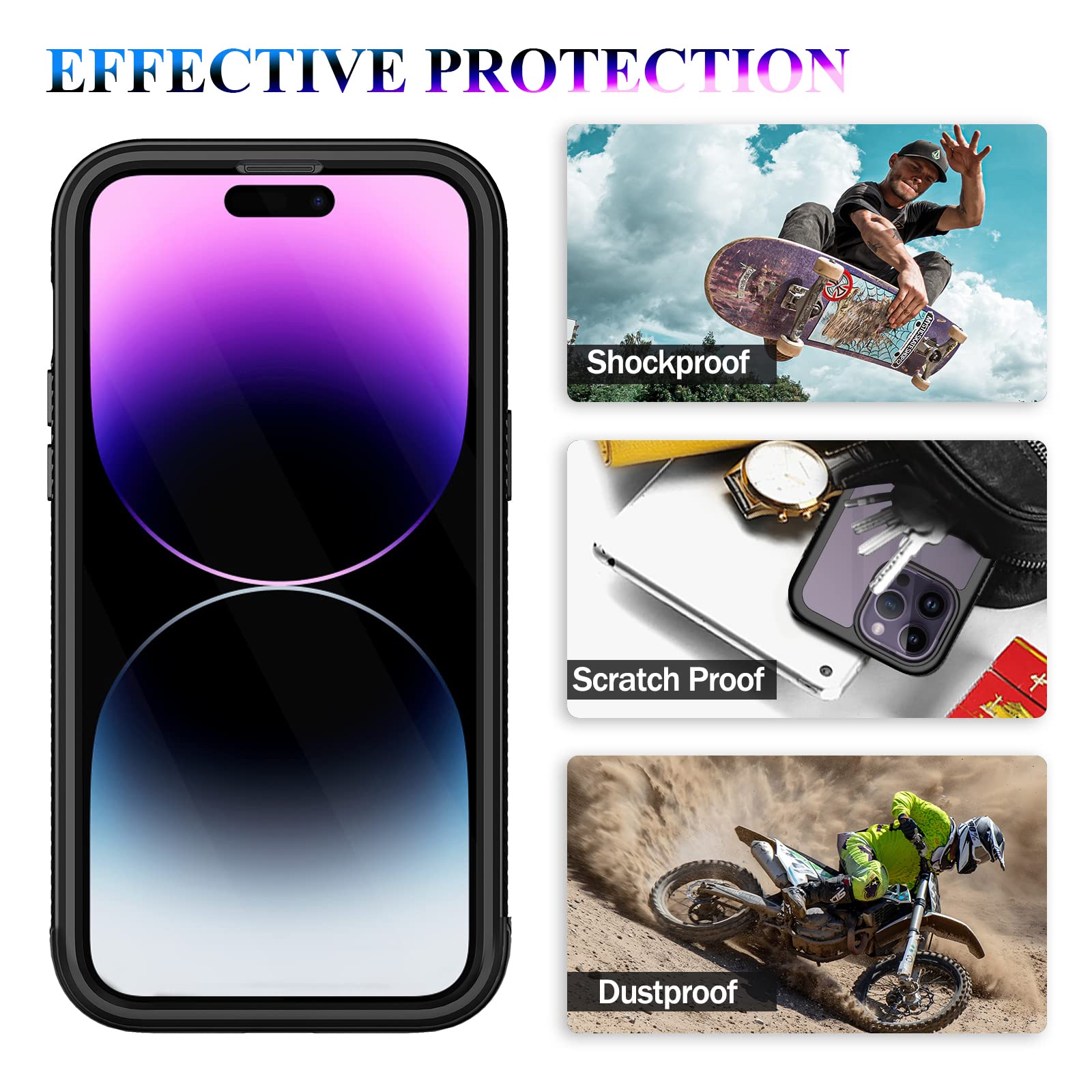 [Drop Resistance and 360° Protection]Four Corners protect your iPhone 14 Pro Max against drops and bumpers. Built-in HD plastic screen protector, clear front and back casing provide full body protection, combination of TPU and Polycarbonate (PC) for dual shockproof.