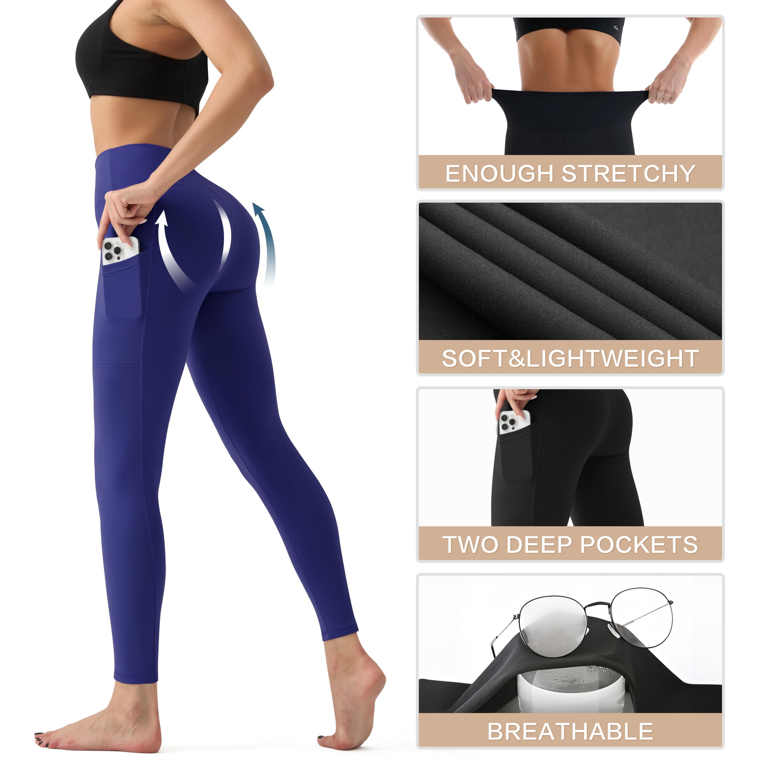 💗【HIGH WAIST TUMMY CONTROL】Our high waisted leggings offer lightweight comfort. The wide waistband with tummy control ensures a smooth and secure fit, accentuating your figure perfectly. They strike the perfect balance between fashion and functionality. With fewer seams, these leggings provide a cleaner and sleeker look, contouring your curves and body structure beautifully, without the concern of irritation or bruising on the inner thighs.