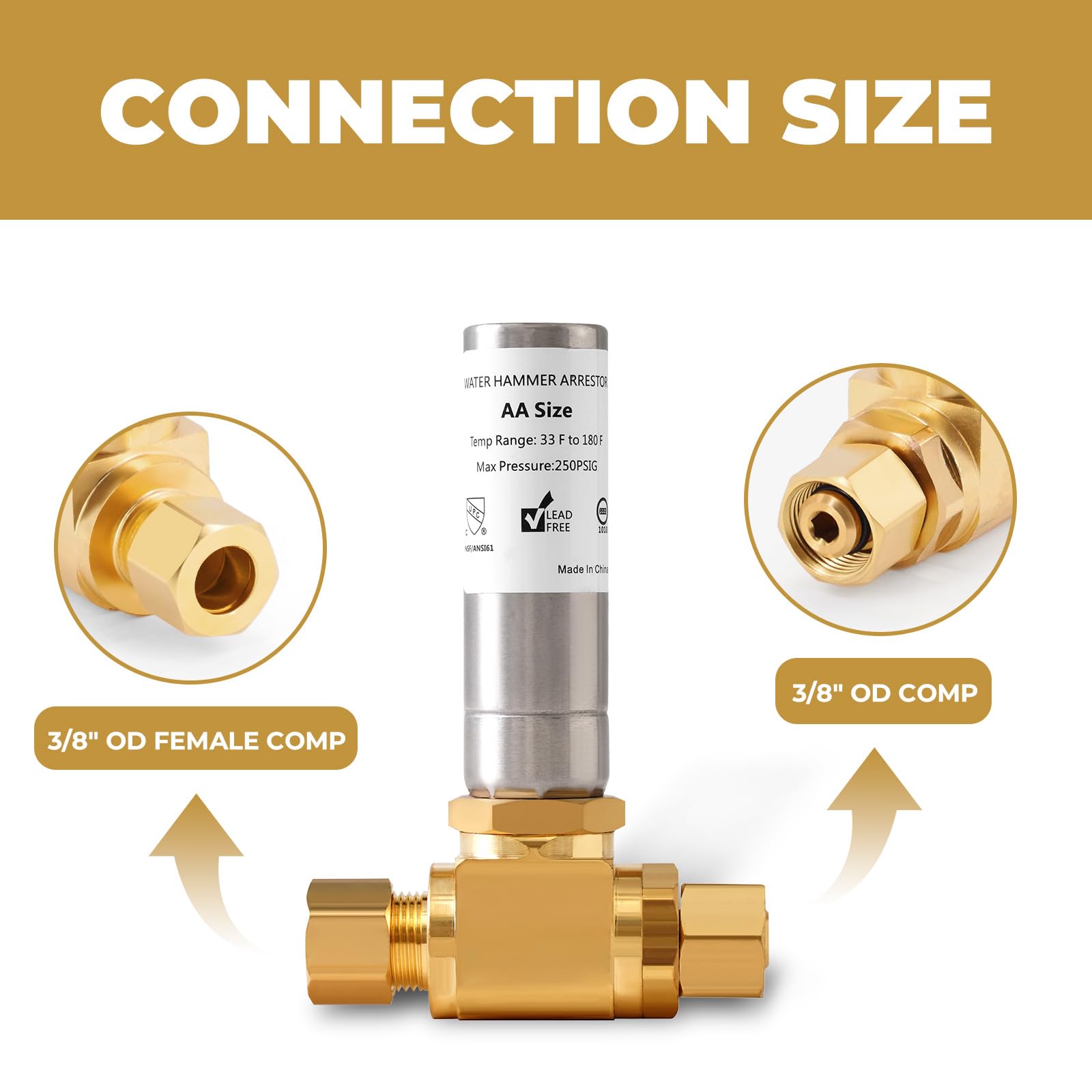 Package Includes: Stainless Steel Water Hammer Arrestor 3/8"OD COMP x3/8" FEM COMP x2