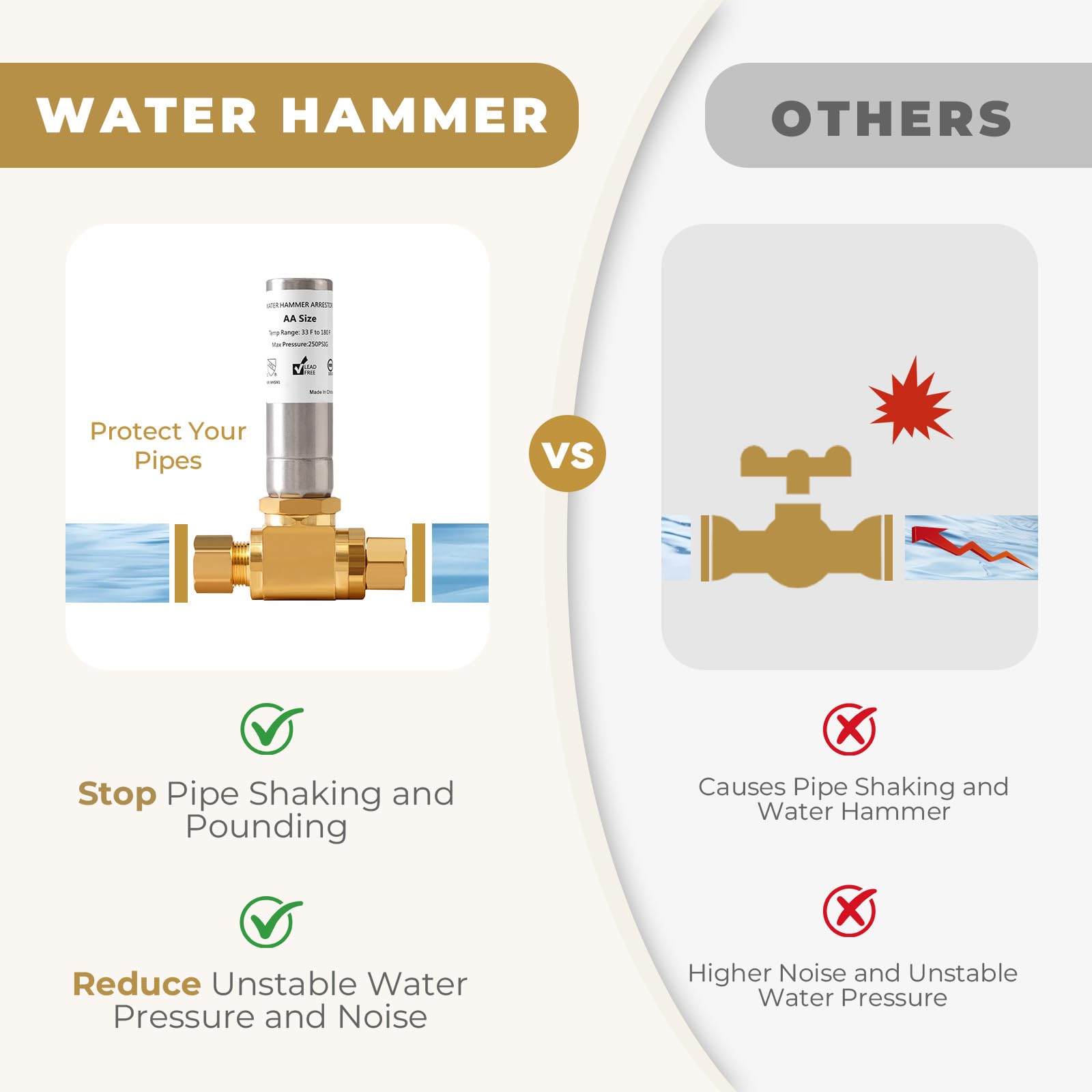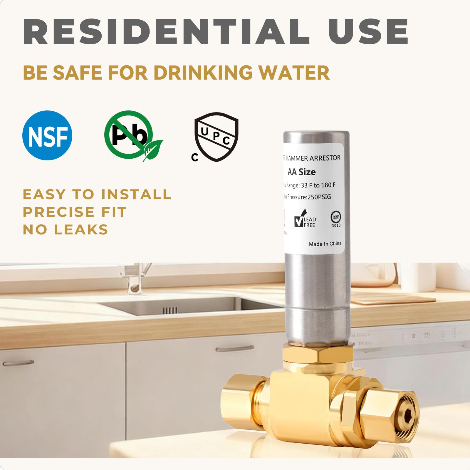 Long Lasting: The SECKWHALE water hammer arrestor is made from high-quality C46500 brass, known for its high corrosion and abrasion resistance. This material ensures reliability and durability in residential settings