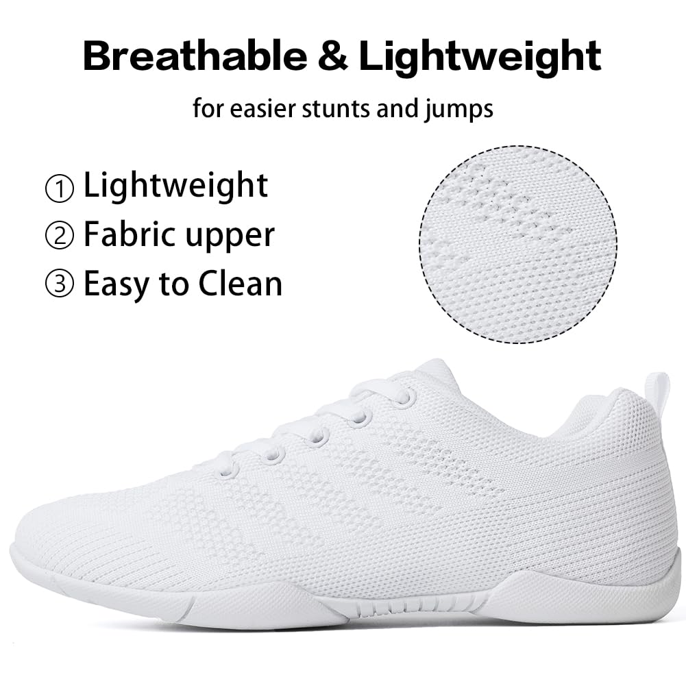 Breathable Cheerleading Shoes: Breathable fabric upper for sweat-free movement during rigorous cheerleading training, provides range of motion free and comfort.
