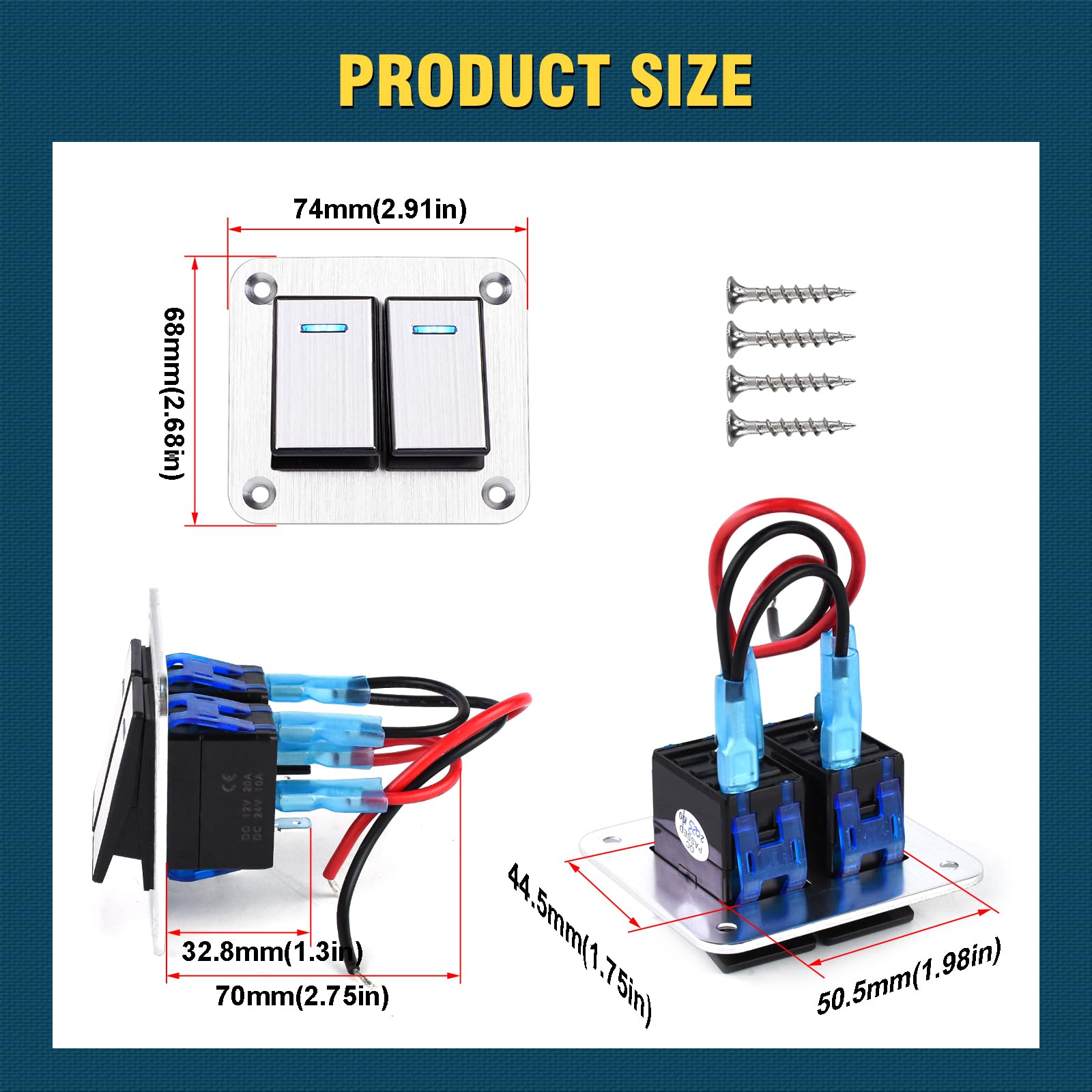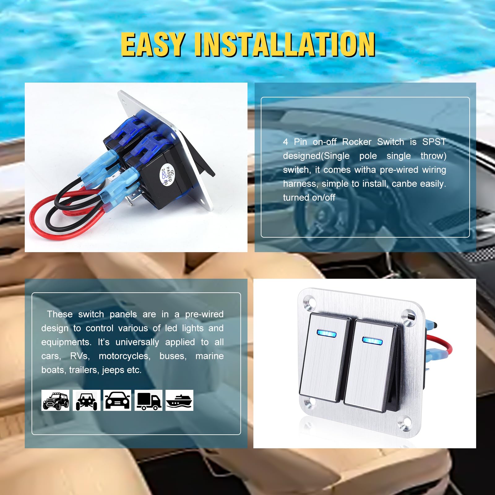 【Multi-Voltage Compatibility】Our 2 gang switch panel supports both DC12V and DC24V, and it features a pre-wired design for easy installation, meeting the needs of various vehicles and boats.