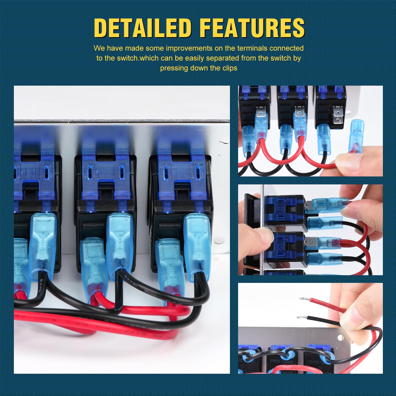 【IP65 Waterproof】This marine toggle switch panel is waterproof design, which makes it not only a car switch panel for automotive use, but also a boat switch panel waterproof for marine use.