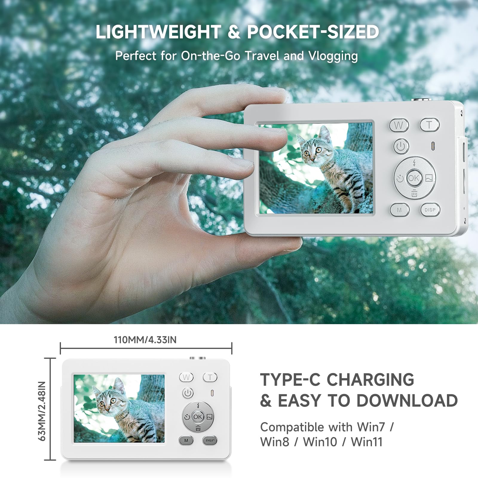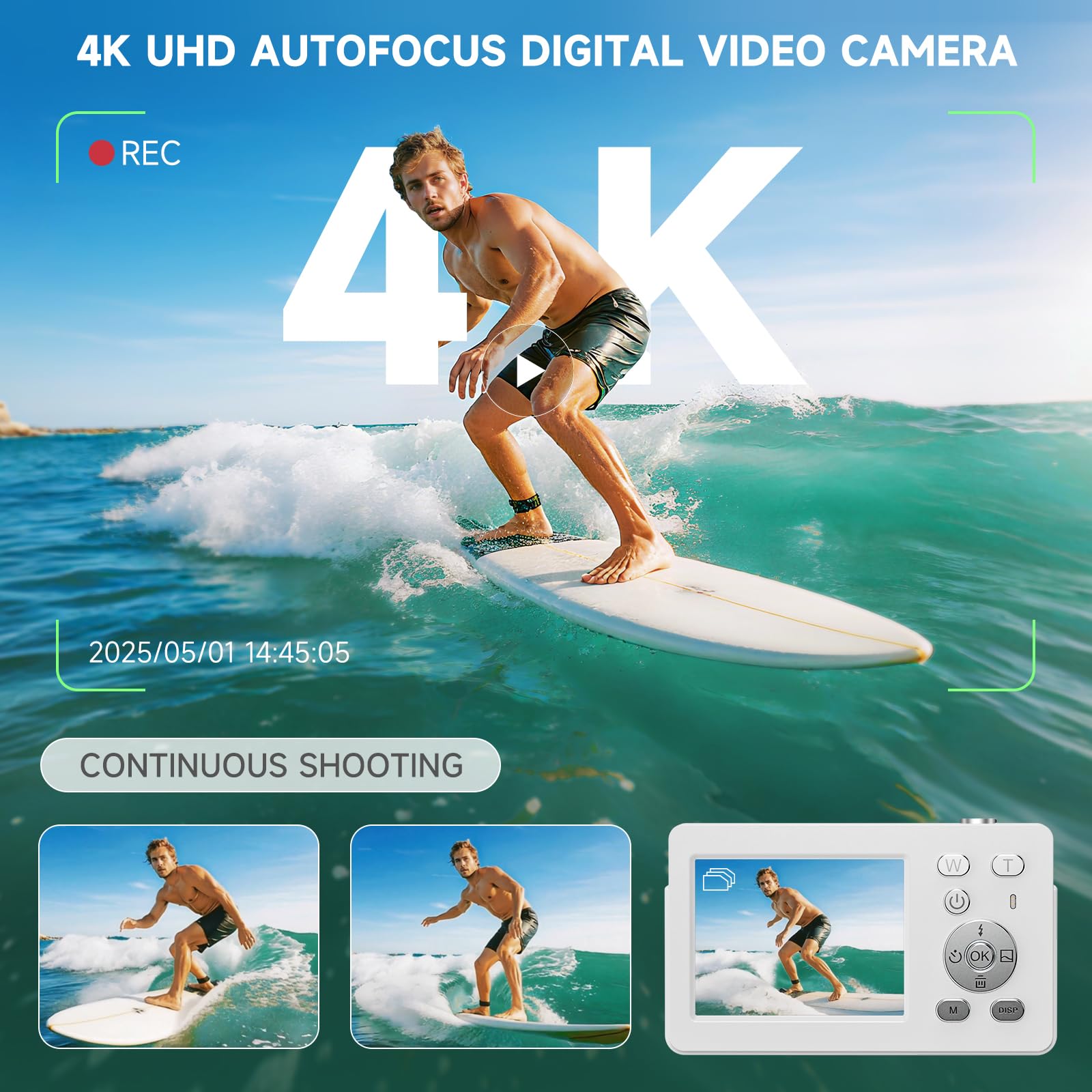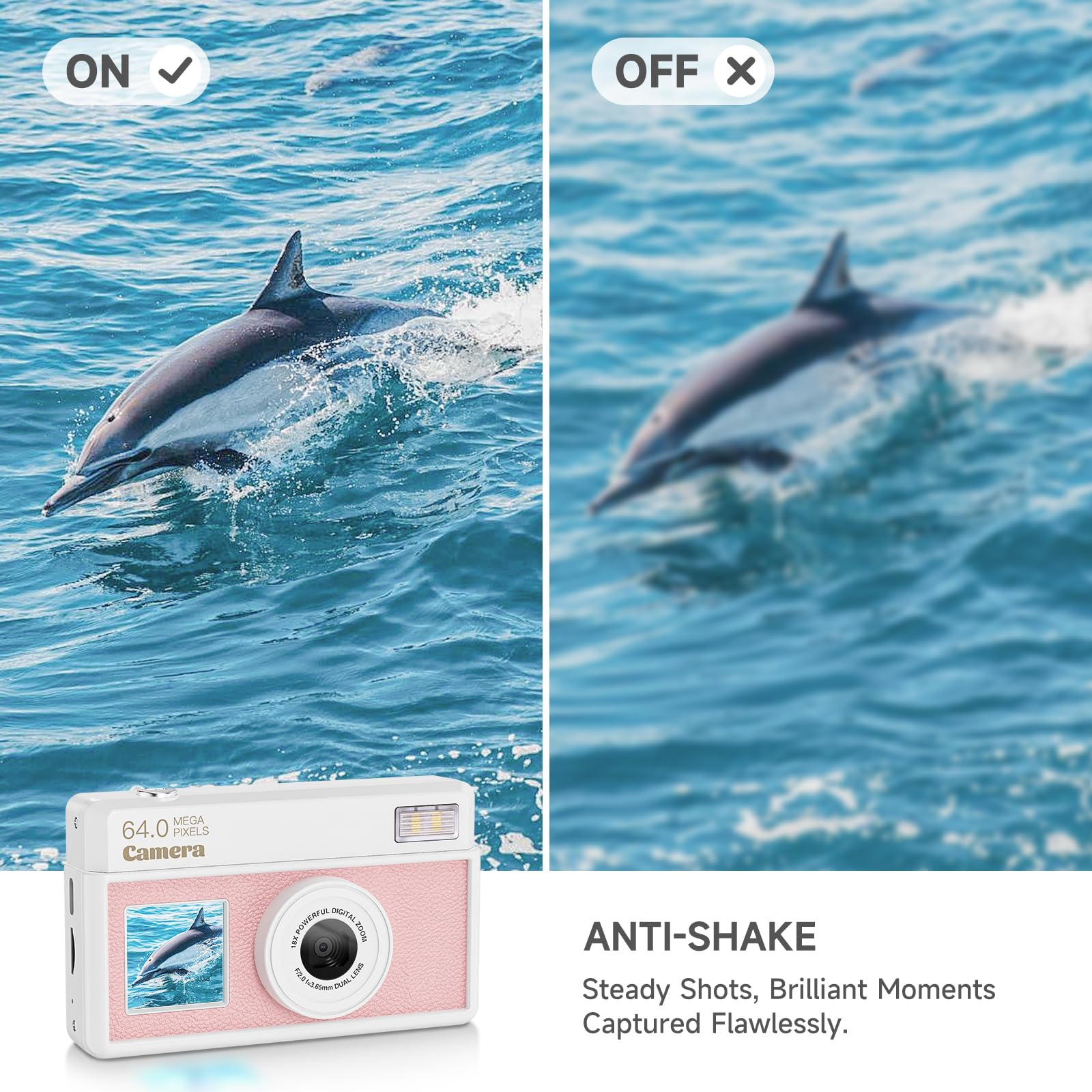 🎥Capture UHD Video & 64MP Photo: This compact digital camera features newest CMOS sensor, supports 4K UHD video recording and 64MP high-resolution photos, turning everyday moments into cinematic memories. Enjoy steady, blur-free photos with built-in anti-shake stabilization, and zoom in on distant scenes with 18X digital zoom.