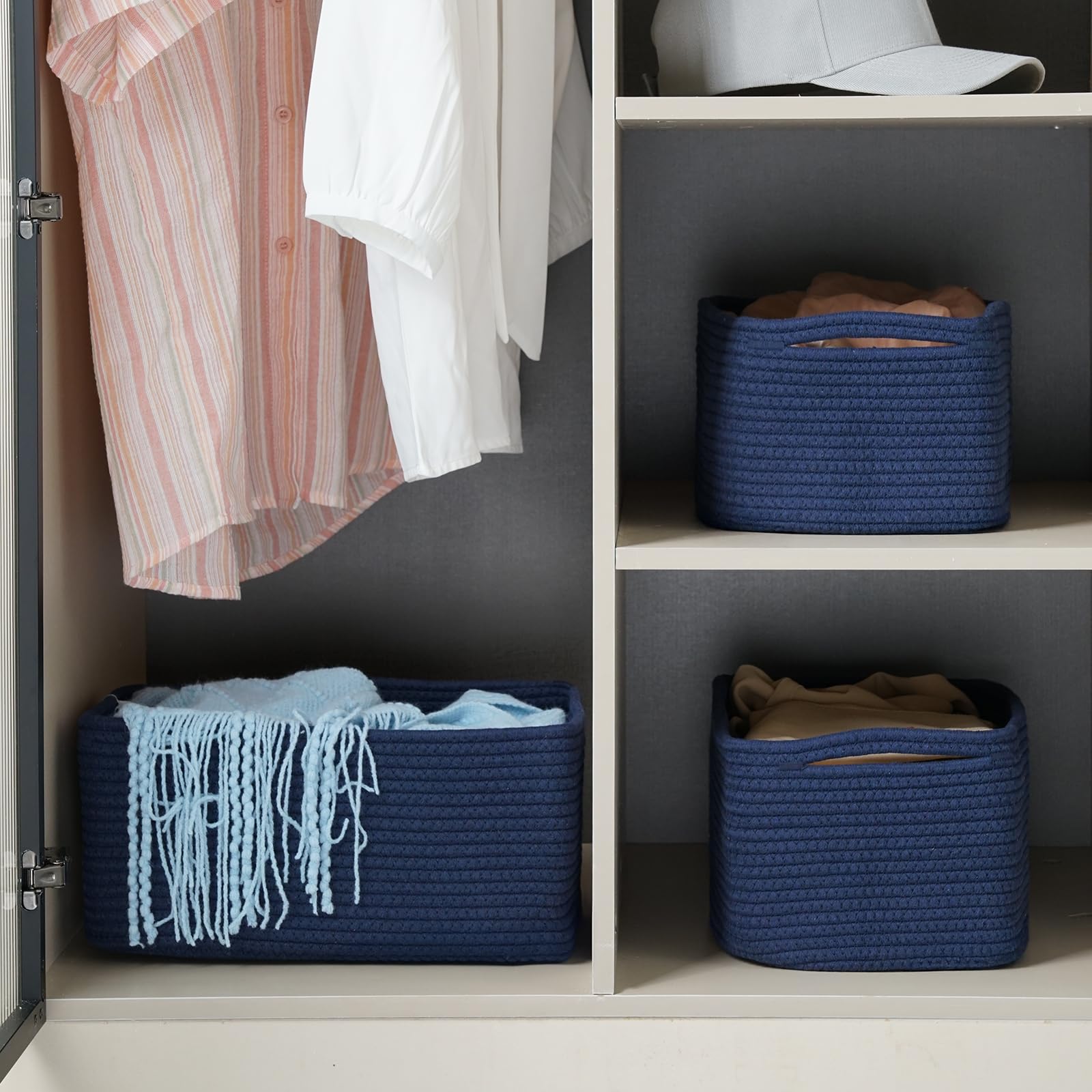 【Home Storage】We specially selected classic colors for these rope basket bins. Our rope baskets can be used as fabric baskets and look great in any room. This cube rope storage basket will enhance any room or decor in your home.