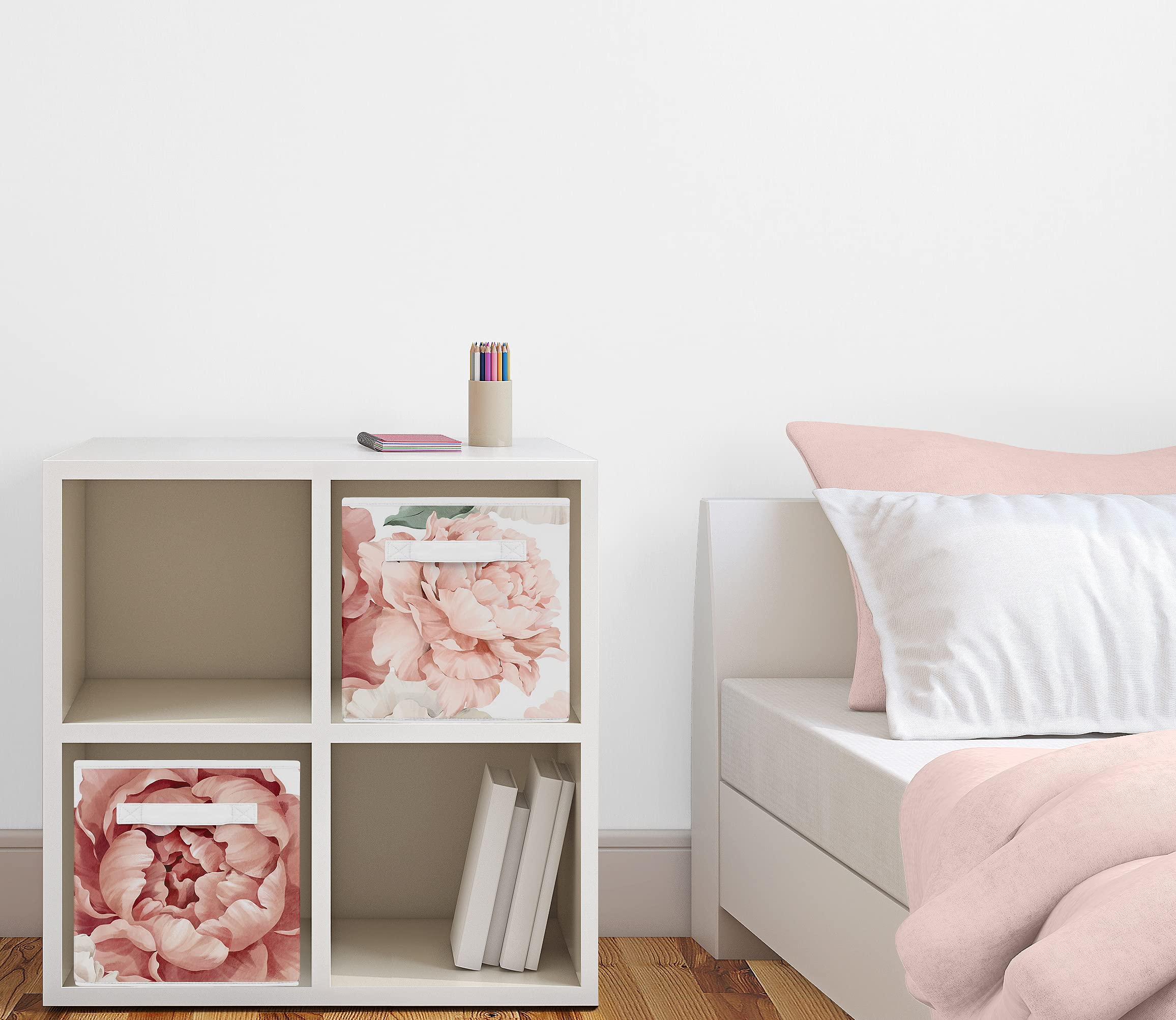 Reinforced fabric handles allow bins to easily slide in and out of most standard cube shelving