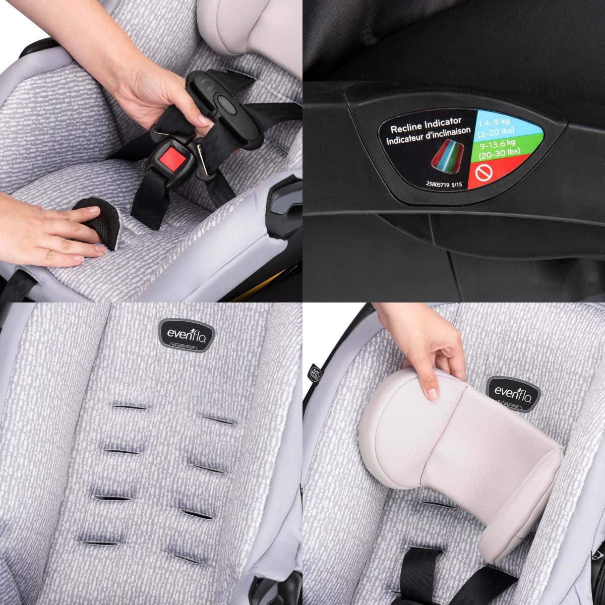 A little convenience goes a long way during the busy first few months of your child’s life. The Evenflo® LiteMax™ 30 delivers and then some, with a super lightweight, easy-to-carry car seat that your baby won’t outgrow overnight. Designed for infants weighing 3 - 30 lb, this lightweight wonder is a breeze to install, but a heavy weight when it comes to comfort and belting in your child for maximum safety. At Evenflo, we go above and beyond government standards to create car seats that are safe. The LiteMax 30 Infant Car Seat meets or exceeds all applicable federal safety standards. In addition to federally required testing, it is structural integrity tested, rollover tested and temperature tested. If you need help installing your car seat, our ParentLink® Consumer Care Team offers help online in real time. Get live video support with a certified car seat safety technician to assist with proper vehicle installation, so you can drive with confidence. Families have trusted Evenflo for more than 100 years for smart, innovative gear designed to make life easier, safer and more comfortable at home and on the go. Let us help you save time and find peace of mind, so you can focus on what matters most: your child.