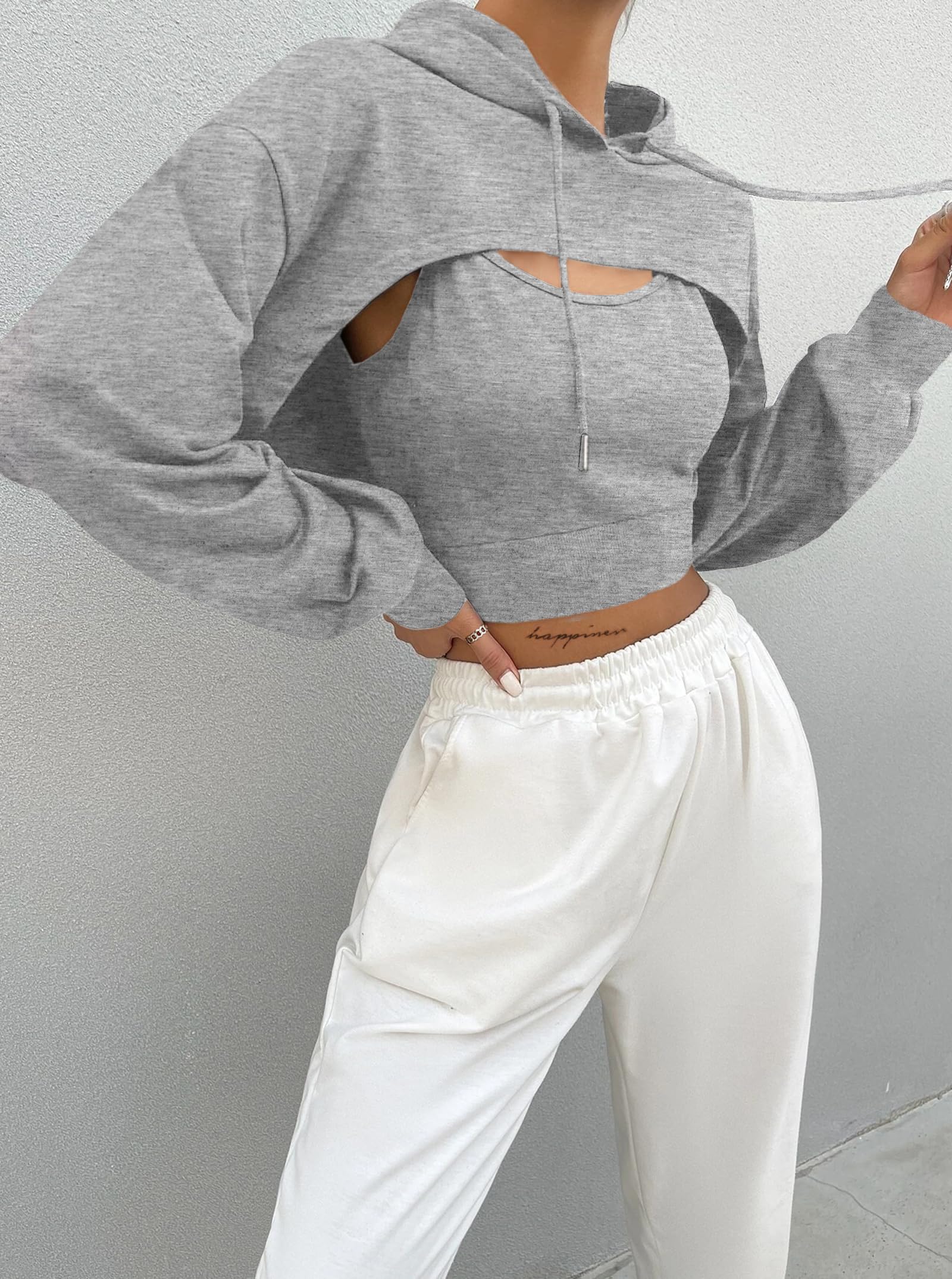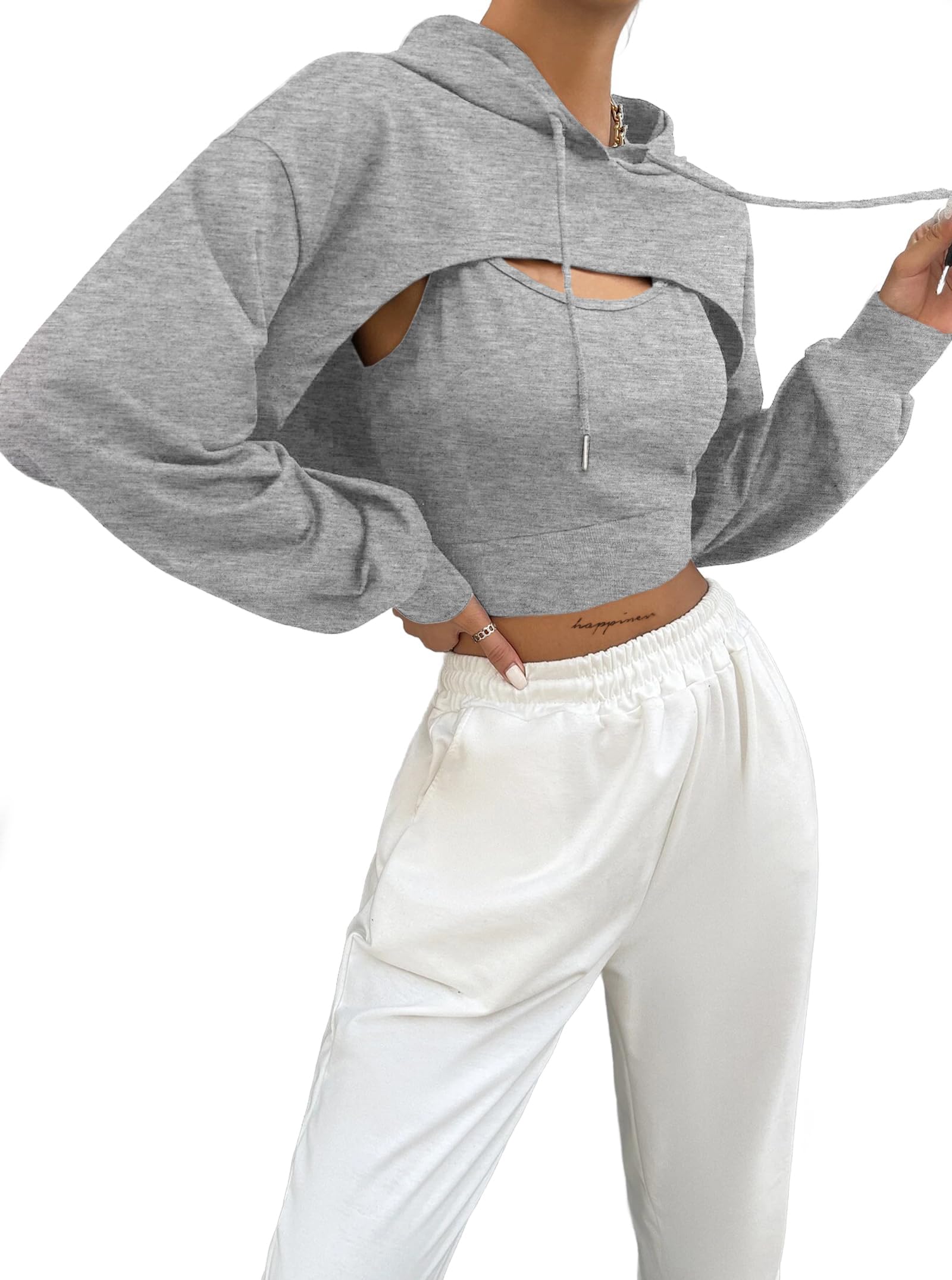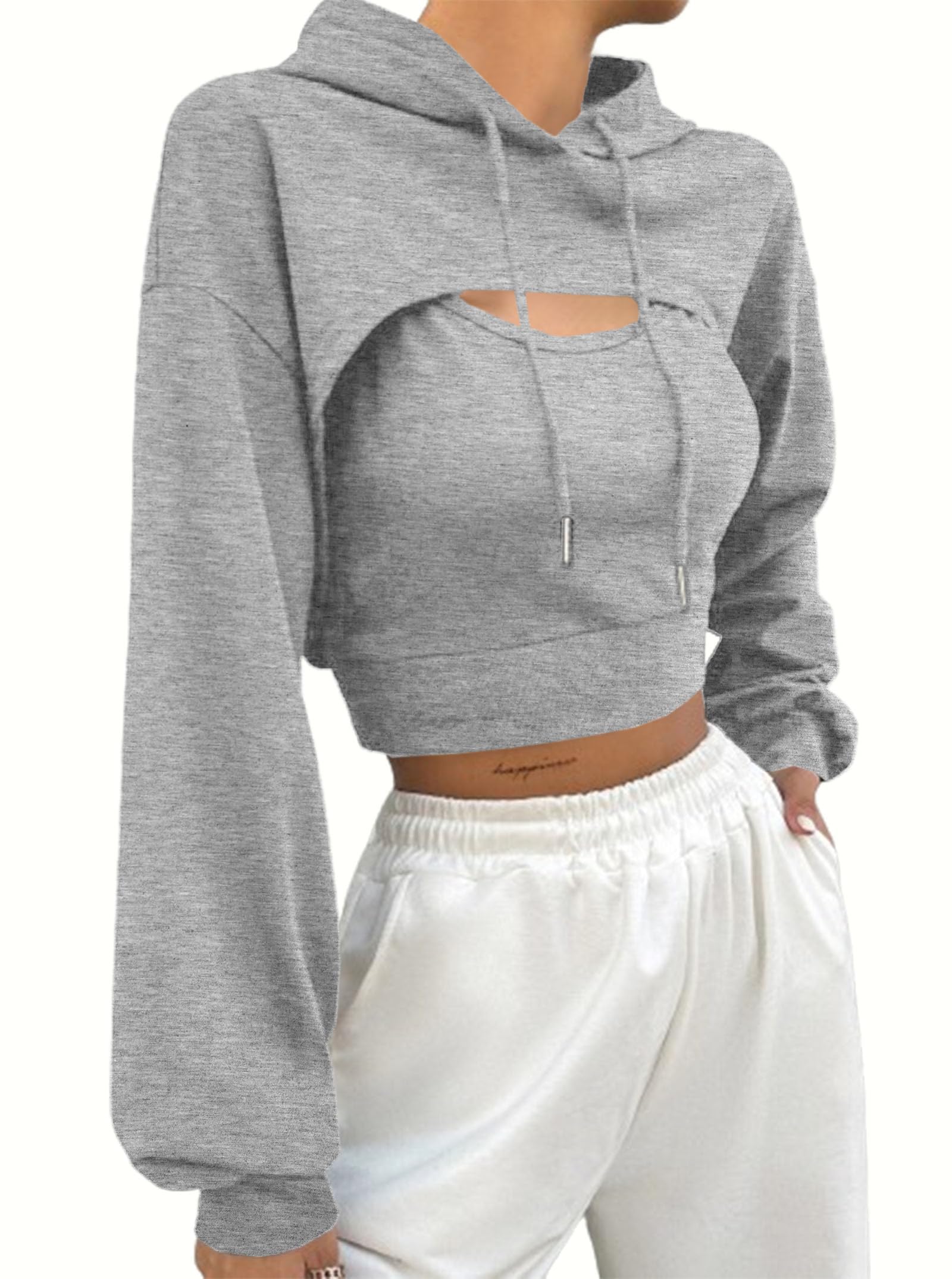 FEATURES: Crop hoodies for women, long sleeves, cropped length, drop shoulder, loose fit, drawstring hooded, workout crop tops for women