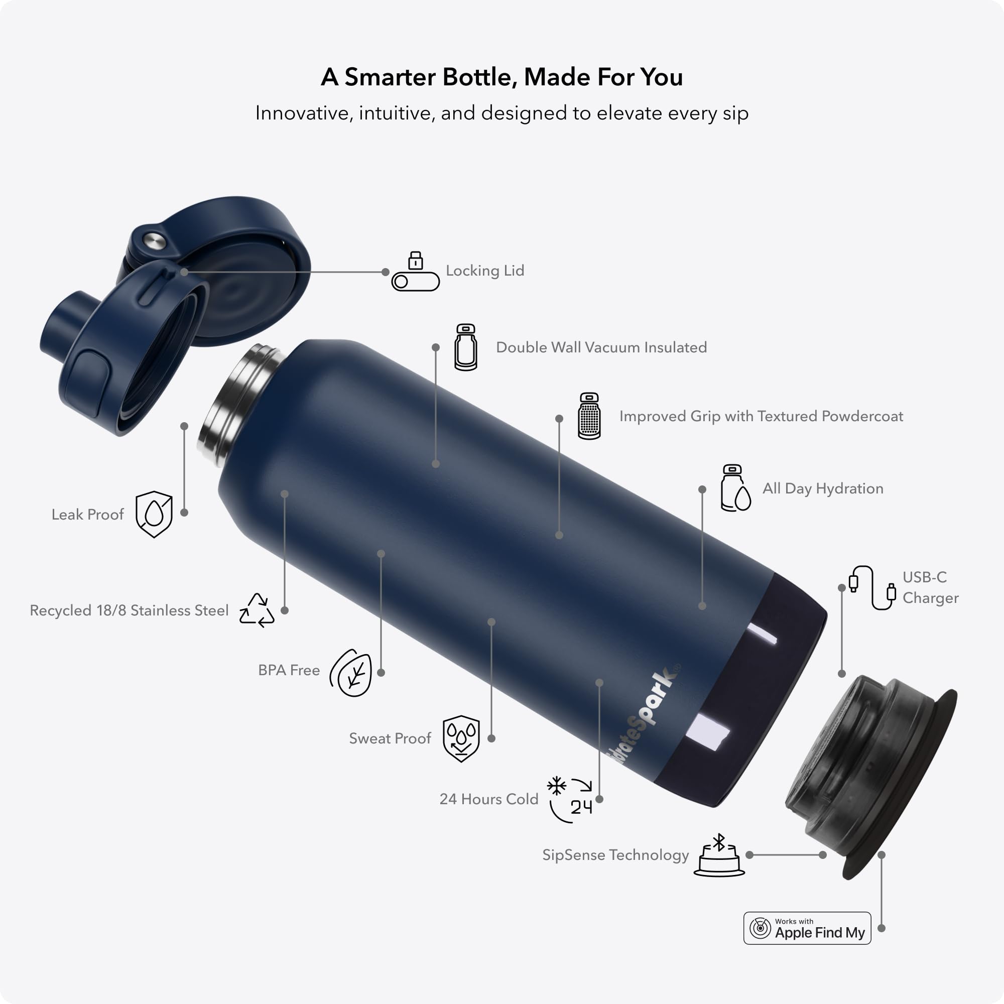 AUTOMATIC HYDRATION TRACKING – SipSense powered sensor uses advanced weight sensing to track every sip and syncs to the app to count toward your daily hydration goal. USB-C rechargeable with up to 21 days of battery life per charge.
