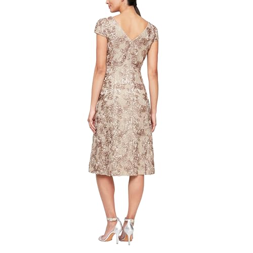 Description This style was made to impress. This figure flattering cocktail dress is crafted from our premium rosette lace, completed with shimmering sequin detail. Perfect for a wedding guest or Mother of the Bride! Hand wash in cold water Lay flat to dry Items must be unworn, unwashed and undamaged, with all tags attached Final sale items cannot be returned Items sent back without authorization, or an Alex Evenings return label, may not be eligible for refunds