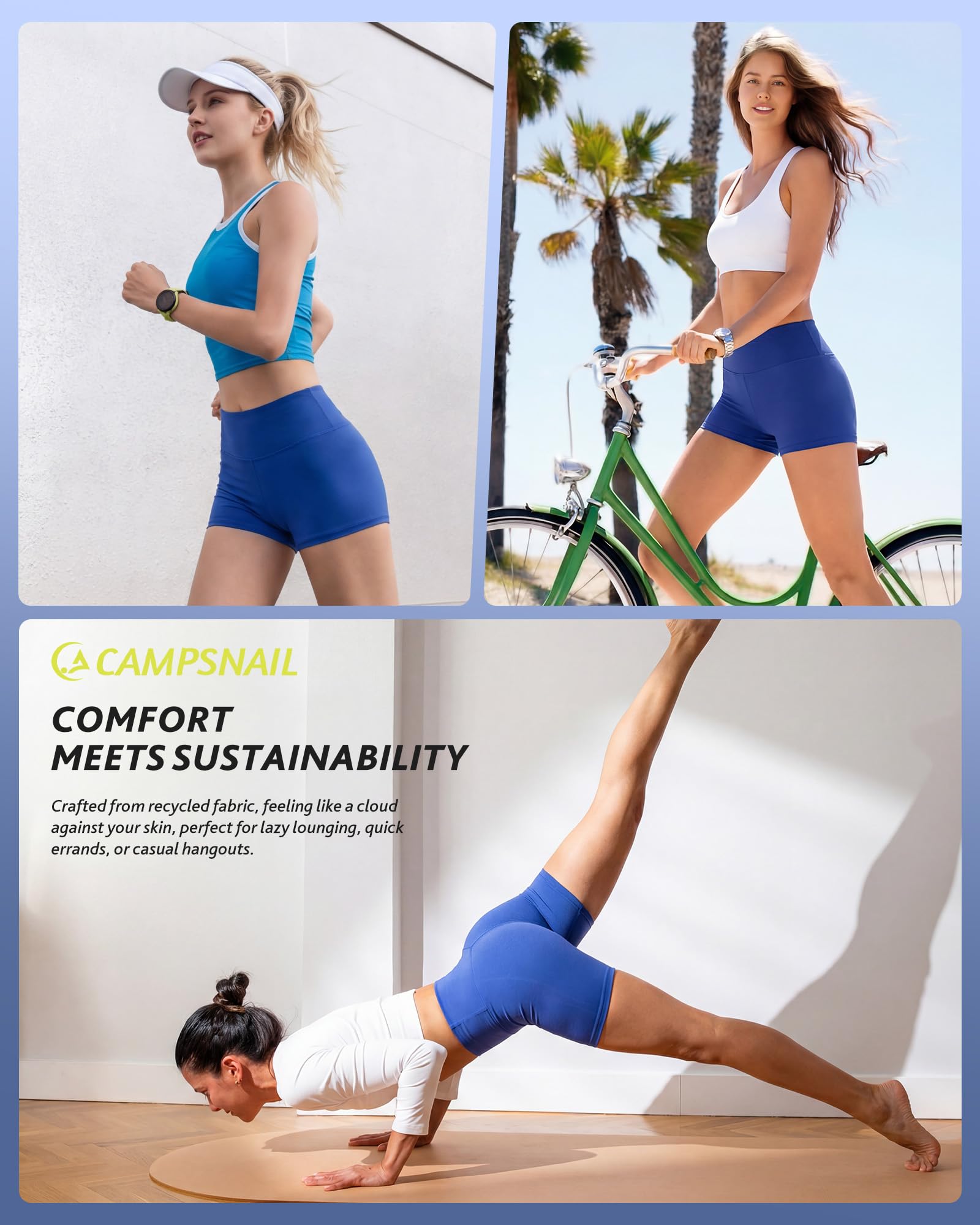 Comfortable & Soft Fabric: CAMPSNAIL 3" shorts for women are material in 92% polyester + 8% spandex, soft like the second skin, and feels like nothing on when you put them on, comfortable enough for a whole day of wearing