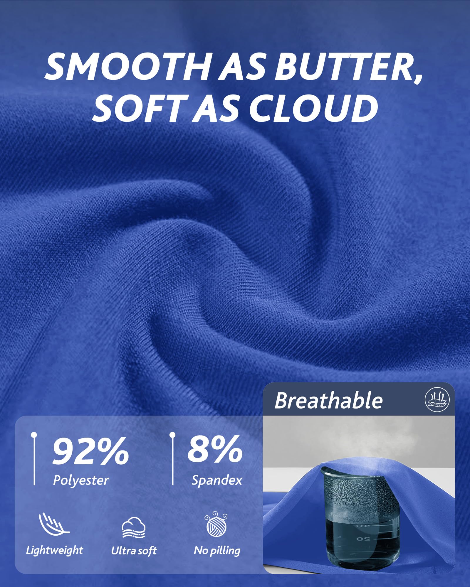 High Stretchy & Long Lasting: 4-Way Stretch fabric can make you at ease while bending, squatting, or moving. Long-lasting for everyday wearing and washing, machine washing with no fading and pilling. Non-see through as well as breathable for summer