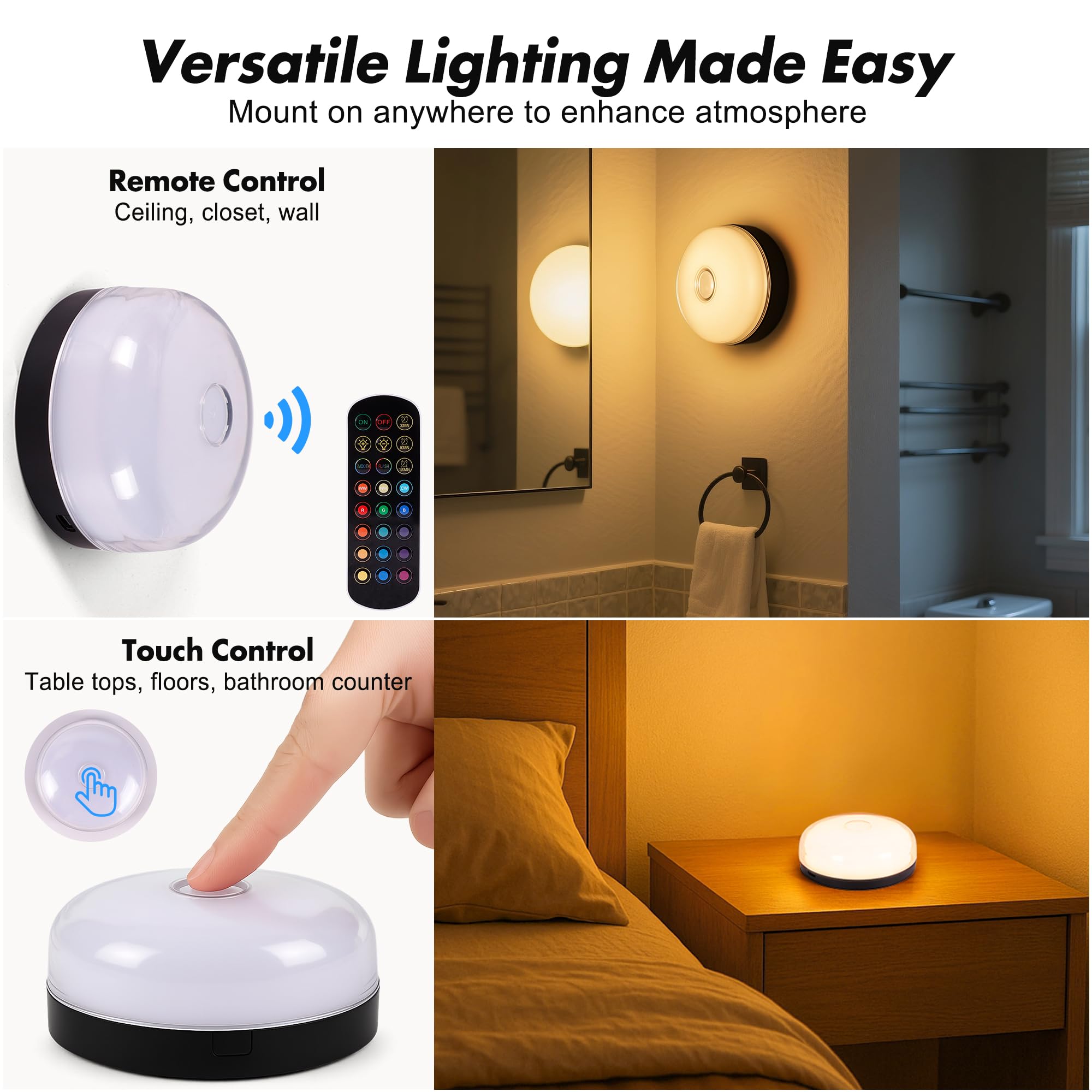 【Smart Remote & Touch Control】Easily adjust colour/dimming/dynamic modes from a distance with the included remote control. Colour/dimming can also be adjusted by touch. Easy to control the light even when your hands are wet