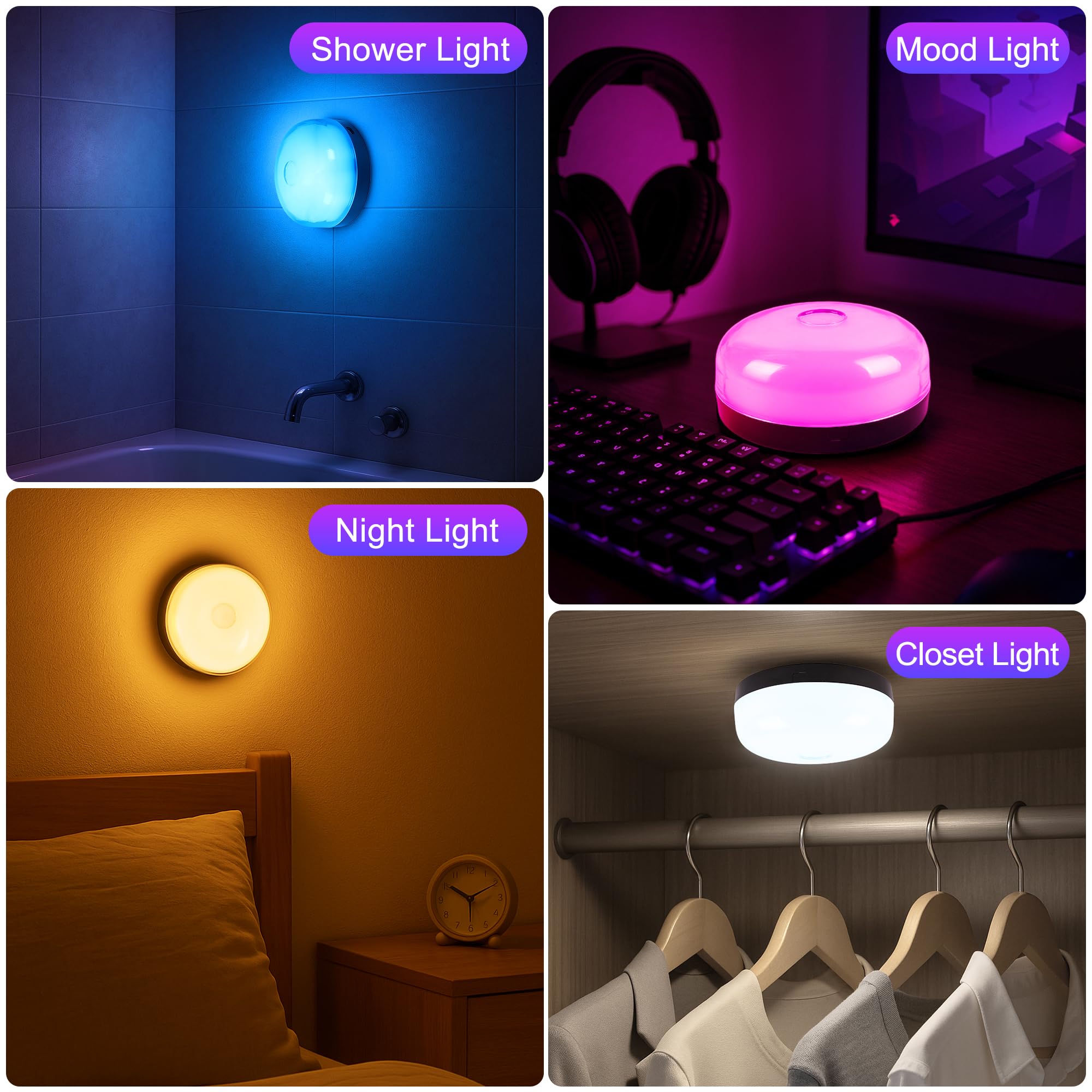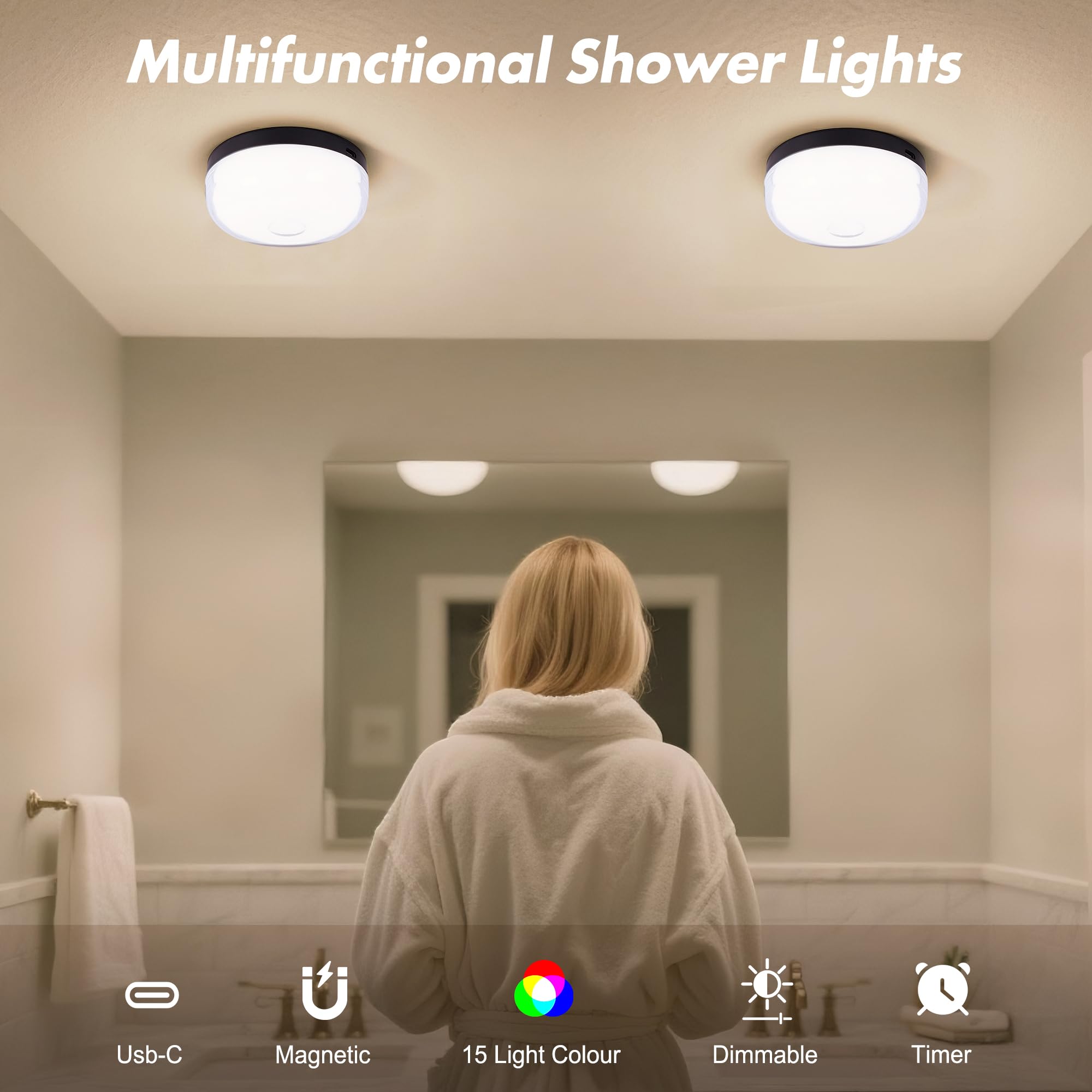 【Rechargeable & No Wiring】No power outlets are required, free from the hassle of limited use, and no longer dangerous to use in the bathroom. Shower light built-in 2000mAh high-capacity battery, a full charge can provide 5-10 hours of continuous lighting experience. Enjoy ambiance lighting anytime, anywhere