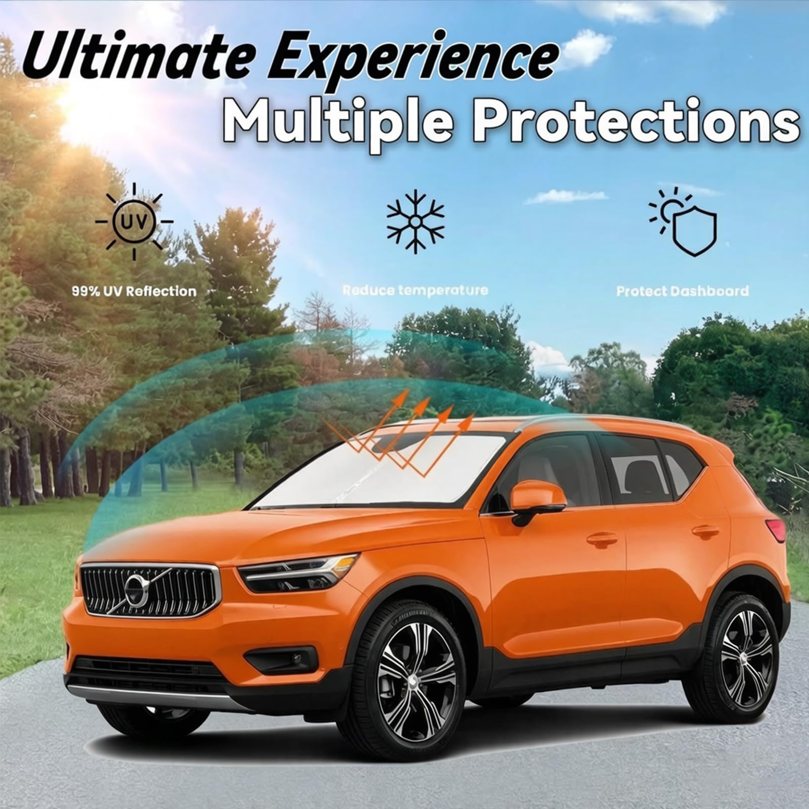 [Custom Precision Fit for Your Volvo XC40] Engineered specifically for the Volvo XC40 (2019‑2026 models), this sun shade installs effortlessly. It hugs your windshield perfectly with no suction cups needed, and resists sagging or collapsing—making it ideal for both daily use and outdoor camping.
