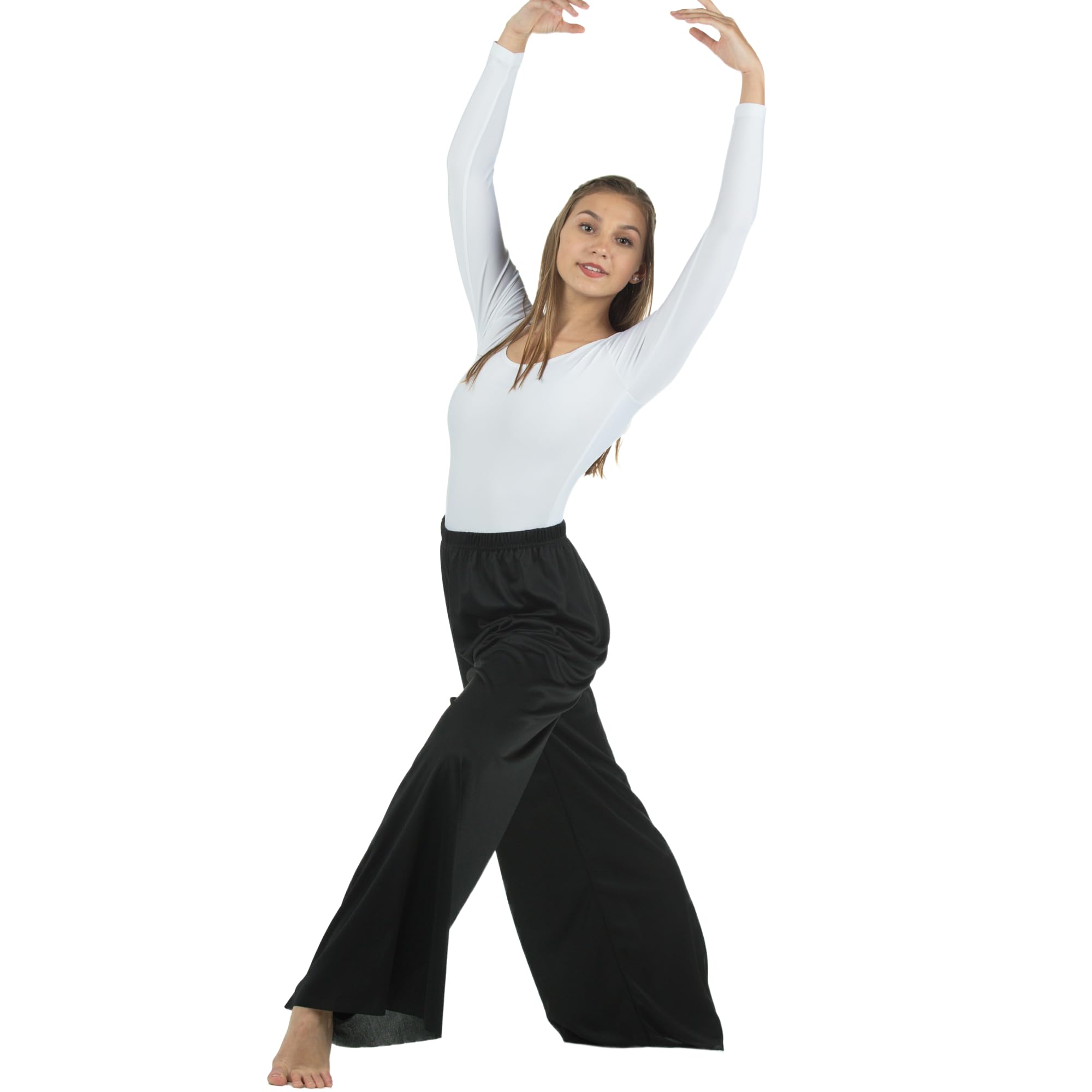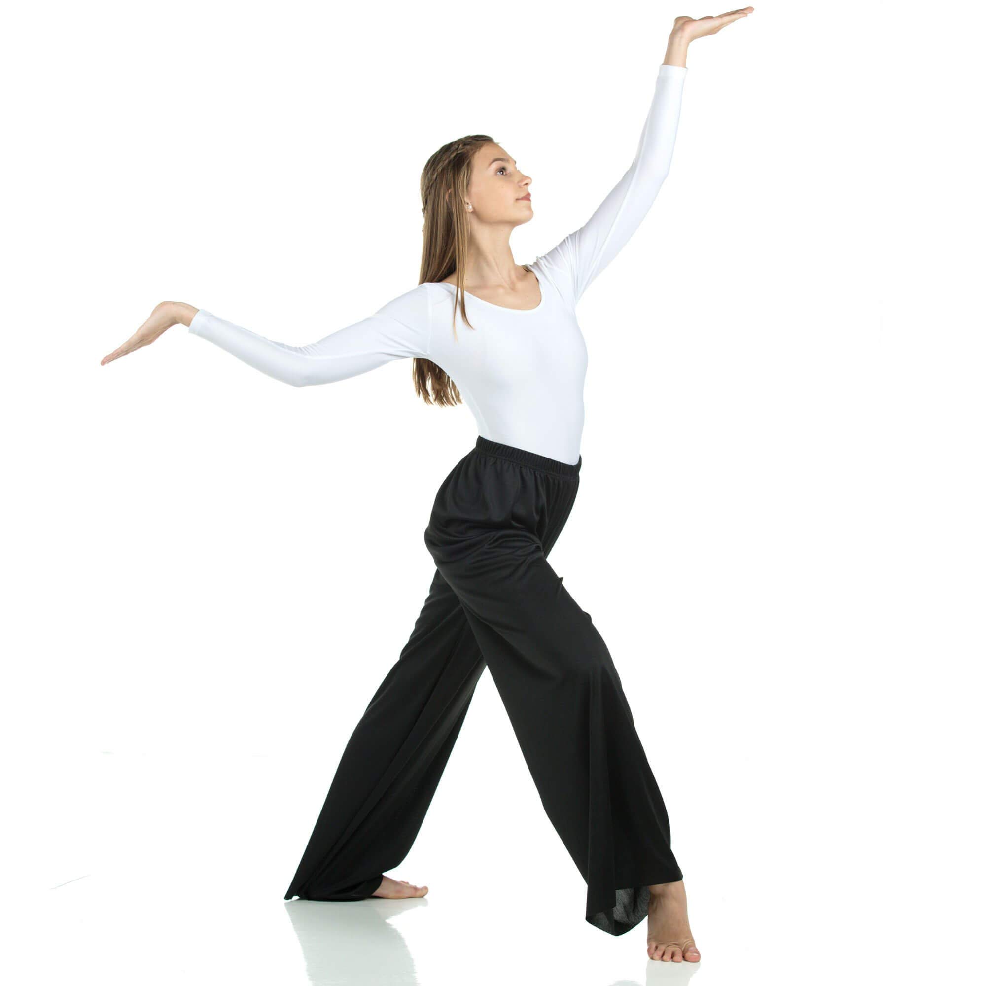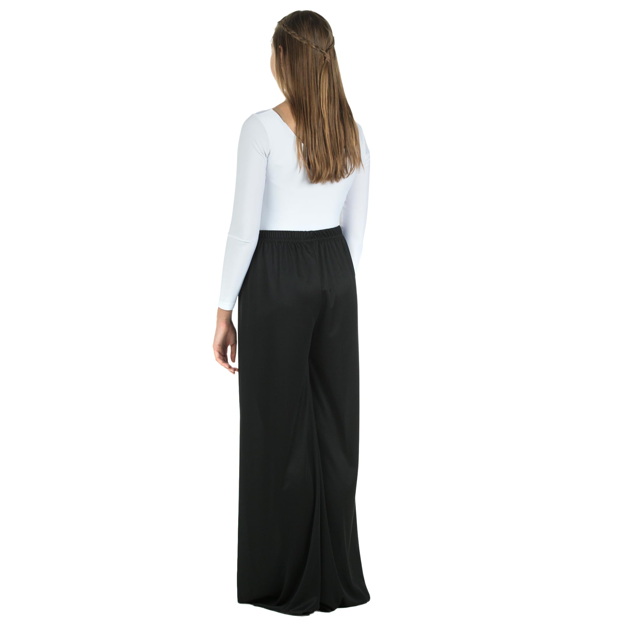 Description Pull-on roomy unity pant has a comfortable elastic waistband. These pants are unisex, appropriate for men or women. The fit is loose and wide leg.