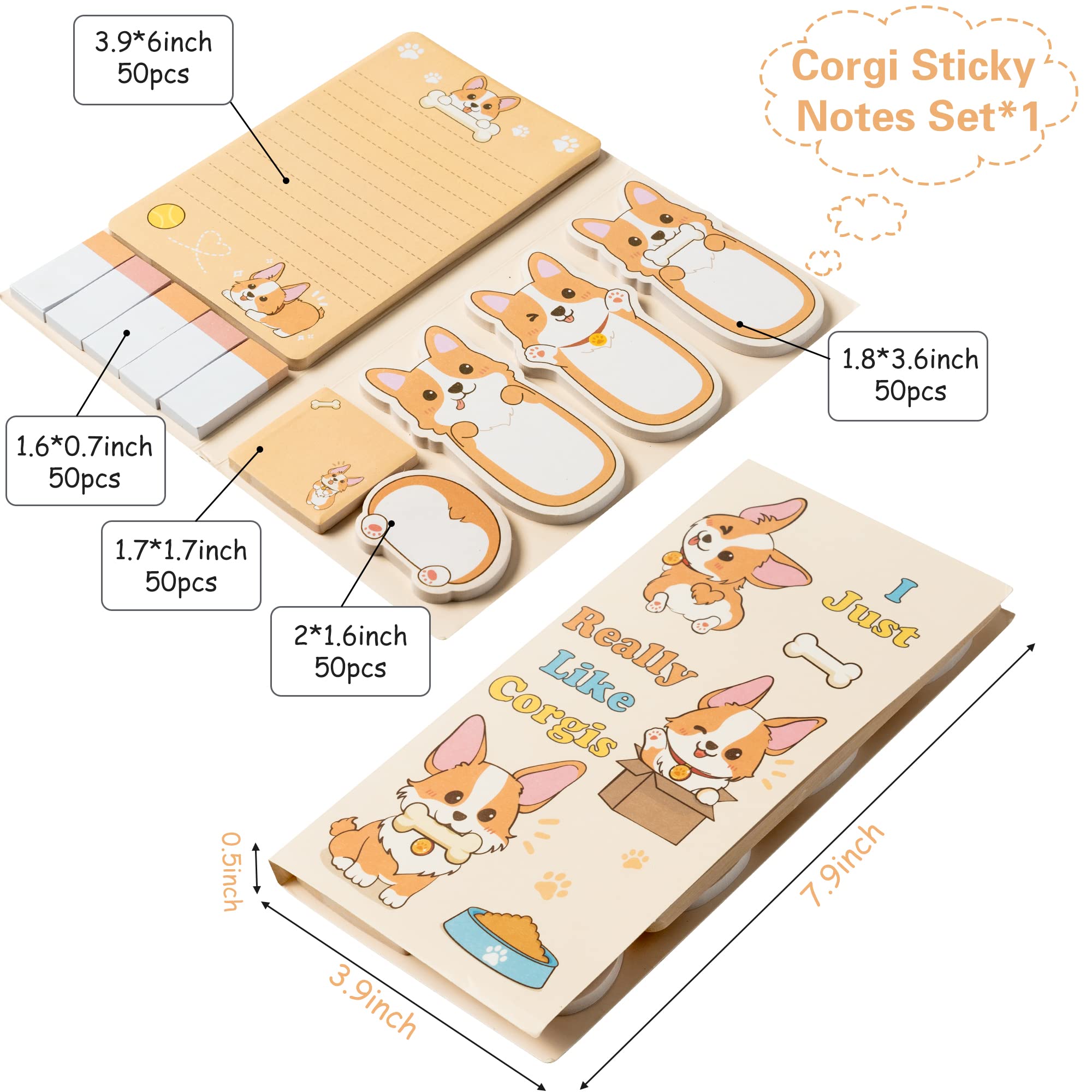Corgi Sticky Notes Set: You will get a set of corgi sticky notes, there are many self-adhesive note pads in different styles and sizes. This set of sticky notes with perfect size, which is easy to carry and fit in your bag. 50 sheets per pad, 550 sheets in total. Meet your various needs