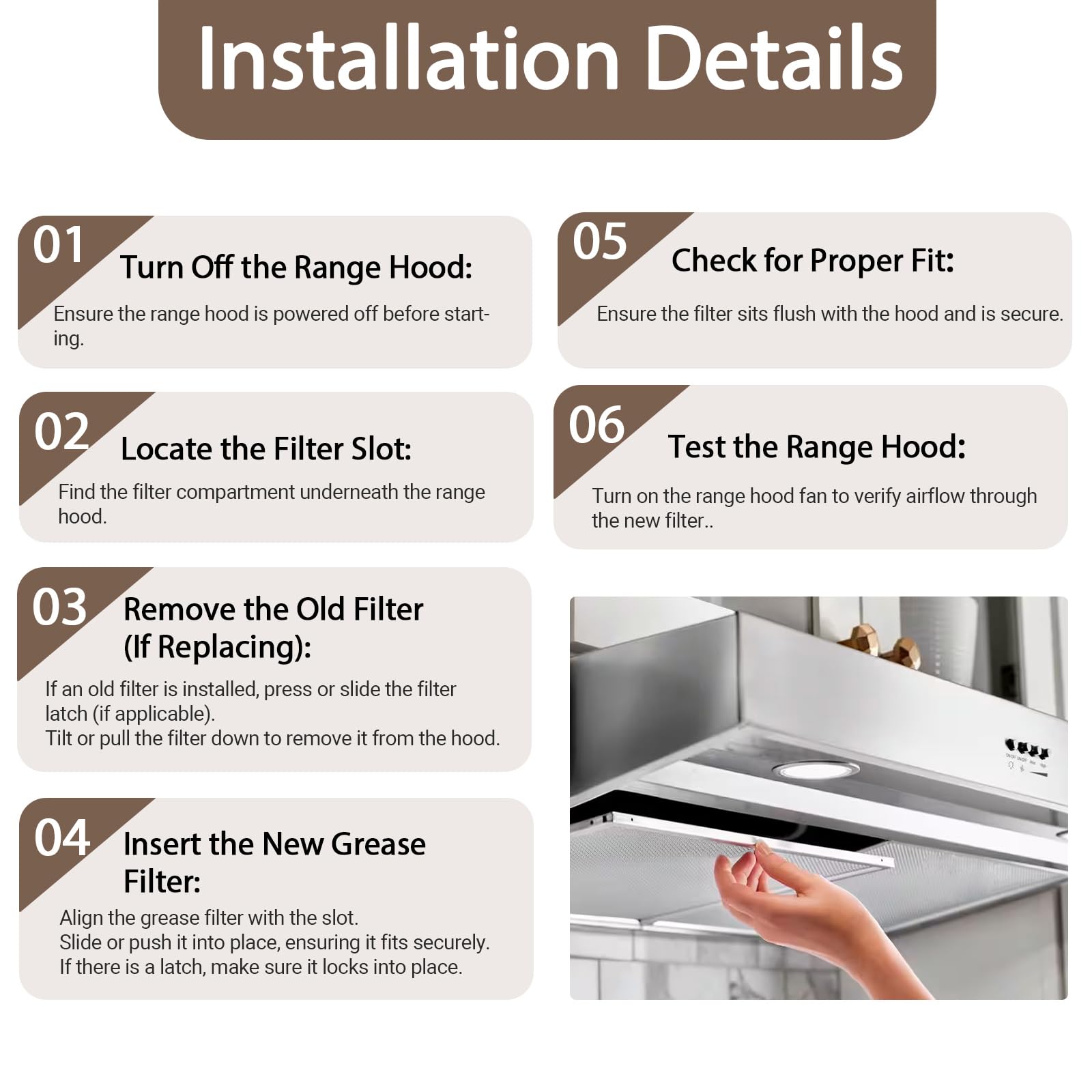 Efficient filtration: The grid structure can effectively intercept the oil and dust generated during the cooking process, preventing them from entering the interior of the range hood and reducing pollution and damage to the range hood