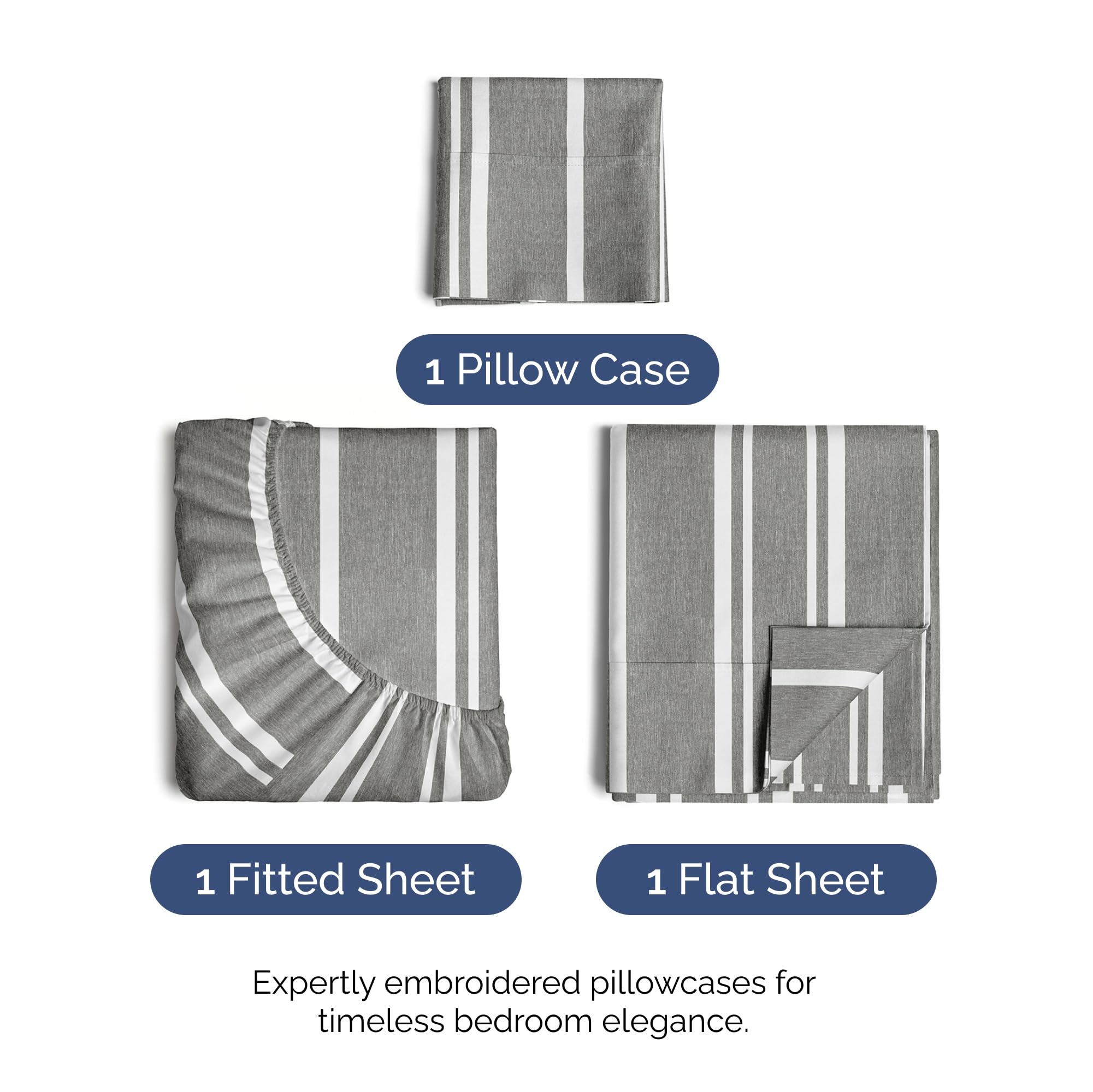 3 PIECE BED SHEET SET: 1 pillow case and flat sheet and fitted sheet. Flat Sheet (96”x 66”) Fitted Sheet (75”x 38”) 1 Pillow Case (20”x 30”) - a comfy upgrade for Adults, Kids, Teens, Boys & Girls.