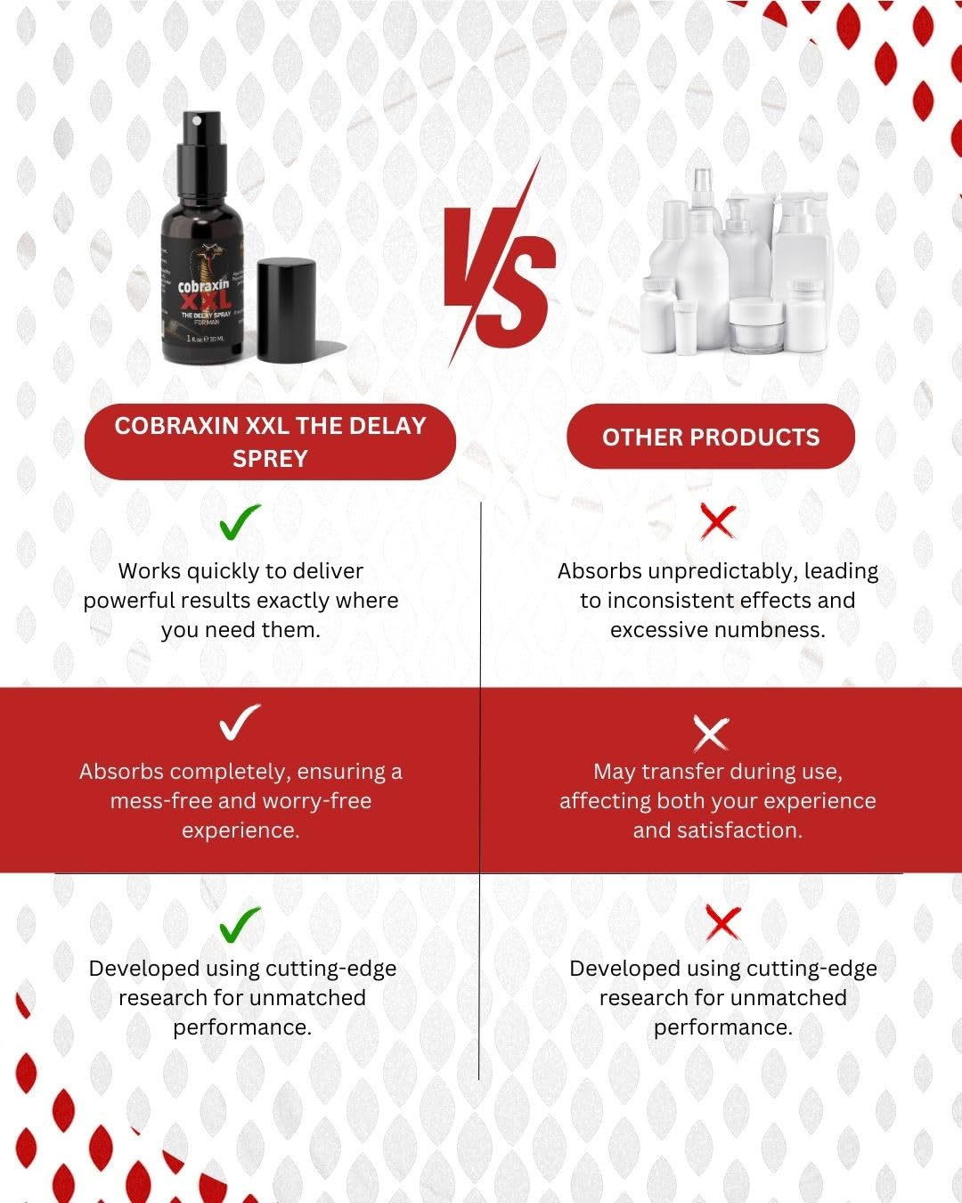 COBRAXIN XXL Premium Delay Spray for Men – Extra Strength Prolonged Intimacy | Instant Desensitizing Effect | Alcohol-Free, Natural Ingredients 10 ml COBRAXIN XXL Premium Delay Spray is designed to help men extend intimacy and take control of their sexual performance. This extra-strength desensitizing spray is perfect for those looking to experience longer-lasting pleasure and confidence in the bedroom. With its instant desensitizing effect, COBRAXIN XXL helps reduce sensitivity, allowing you to last longer and enjoy a more satisfying intimate experience. Formulated with natural ingredients and free from alcohol, this 30ml bottle offers a smooth and non-irritating application, ensuring a comfortable experience. Whether you’re seeking to enhance your performance, improve sexual endurance, or simply want to enjoy longer-lasting moments, COBRAXIN XXL is your ideal solution. Perfect for those who desire control over their climax, COBRAXIN XXL Delay Spray is discreet, easy to use, and provides a reliable alternative to other performance-enhancing solutions. Boost your confidence and experience more fulfilling moments with COBRAXIN XXL Premium Delay Spray – because every man deserves to stay in control.