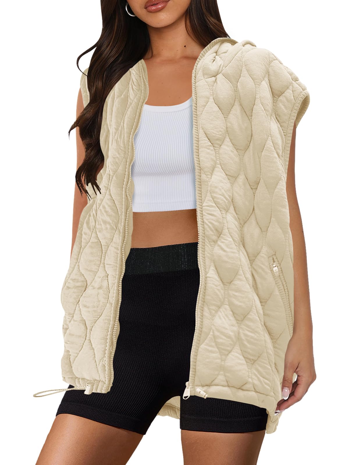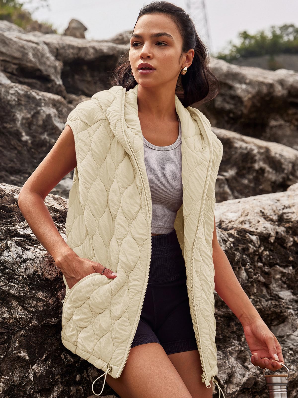 Features: With a hooded design and 2 side pockets, our womens oversized vest features a classic zip-front silhouette with exposed seaming for added dimension, the oversized vests for women's designed to fit oversized for an effortless, relaxed look