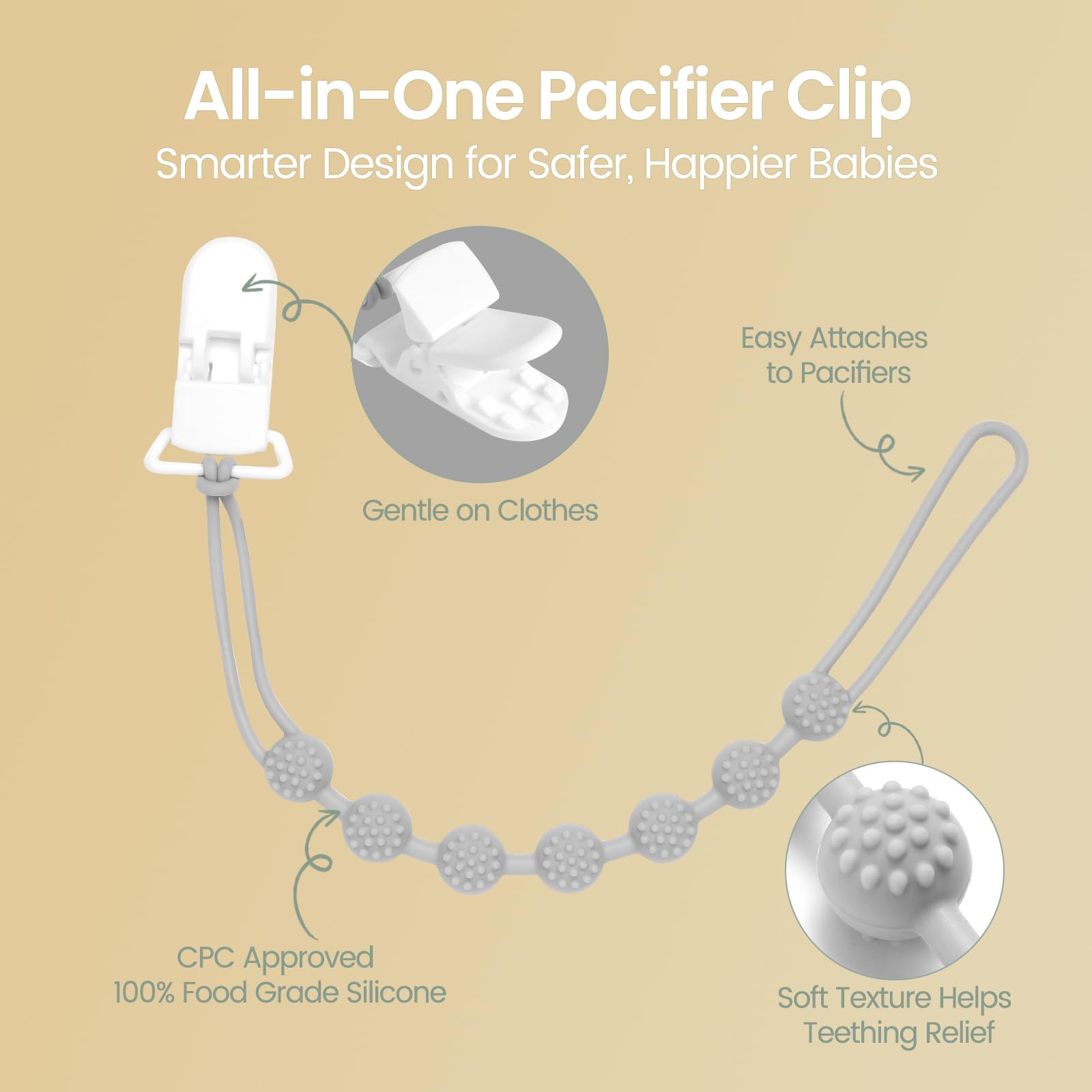Multifunctional Uses: Our pacifier clips are suitable for most of the pacifier styles that have a ring part, the different texture on the pacifier holder can also relieve your baby's gums from pain or teething, suitable for both boys and girls, it's a baby essentials!