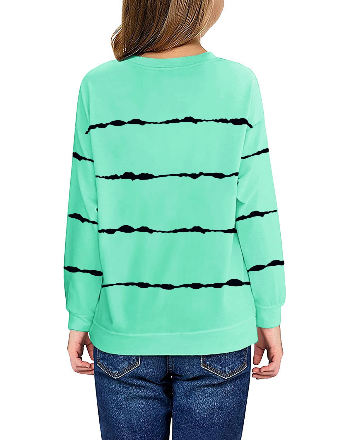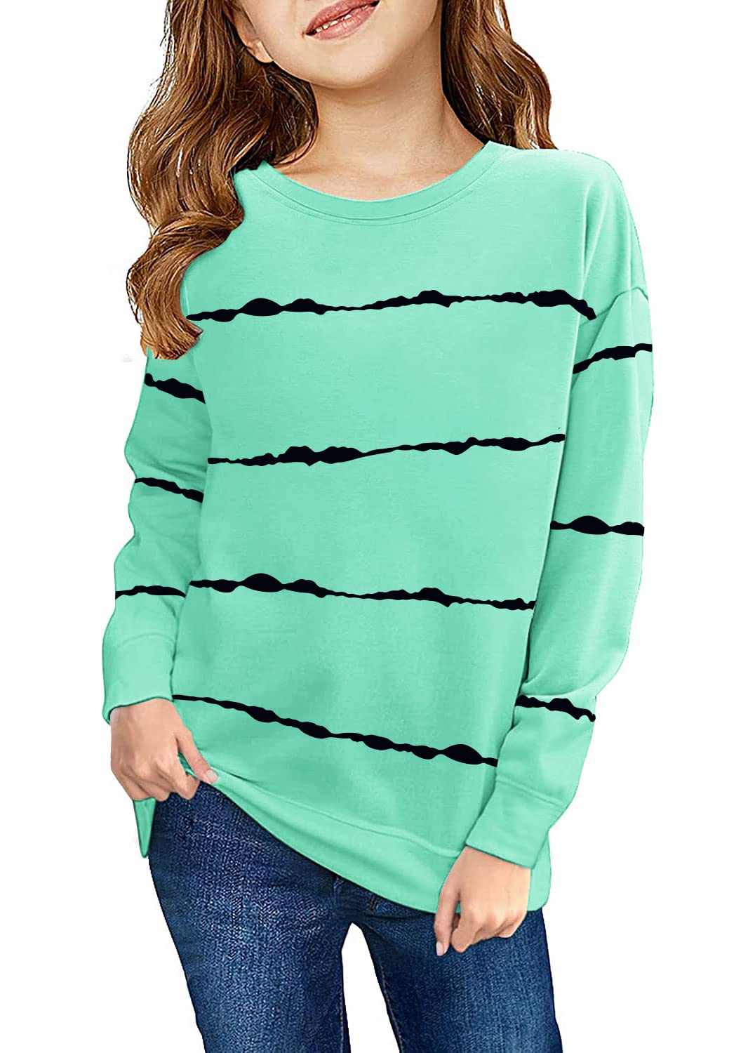 Features: Girls pullover tops designed with long sleeve, stripes printed, tie dye print, dazzling color block, crewneck neckline.Casual loose sweatshirts are perfect for children, kids, teen girls to match any outfits.