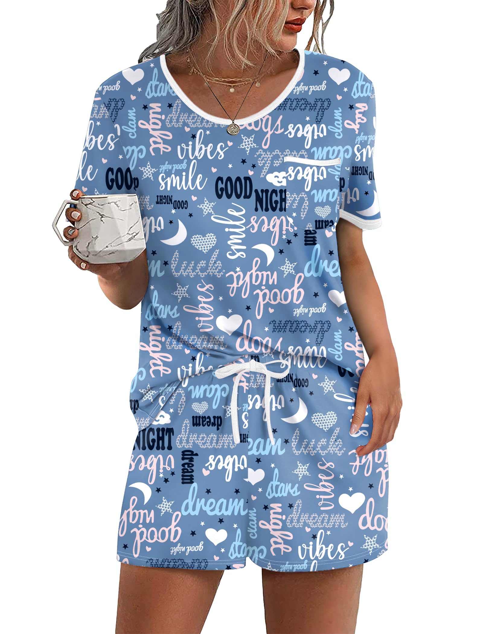 Two Piece Pajama Set: Sleepwear with tops and shorts has a loose fit for added comfort. Extra soft, comfy, and breathable sleepwear set for bedtime