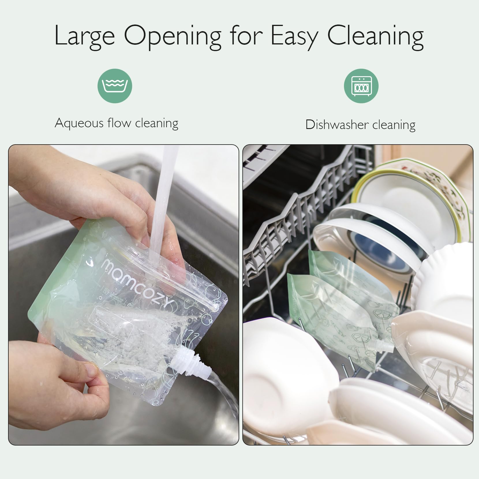 Self-Standing with Side Zipper: The upright base allows easy filling without tipping. Wide side-zipper opening makes spooning or pouring purees fast, clean, and frustration-free.