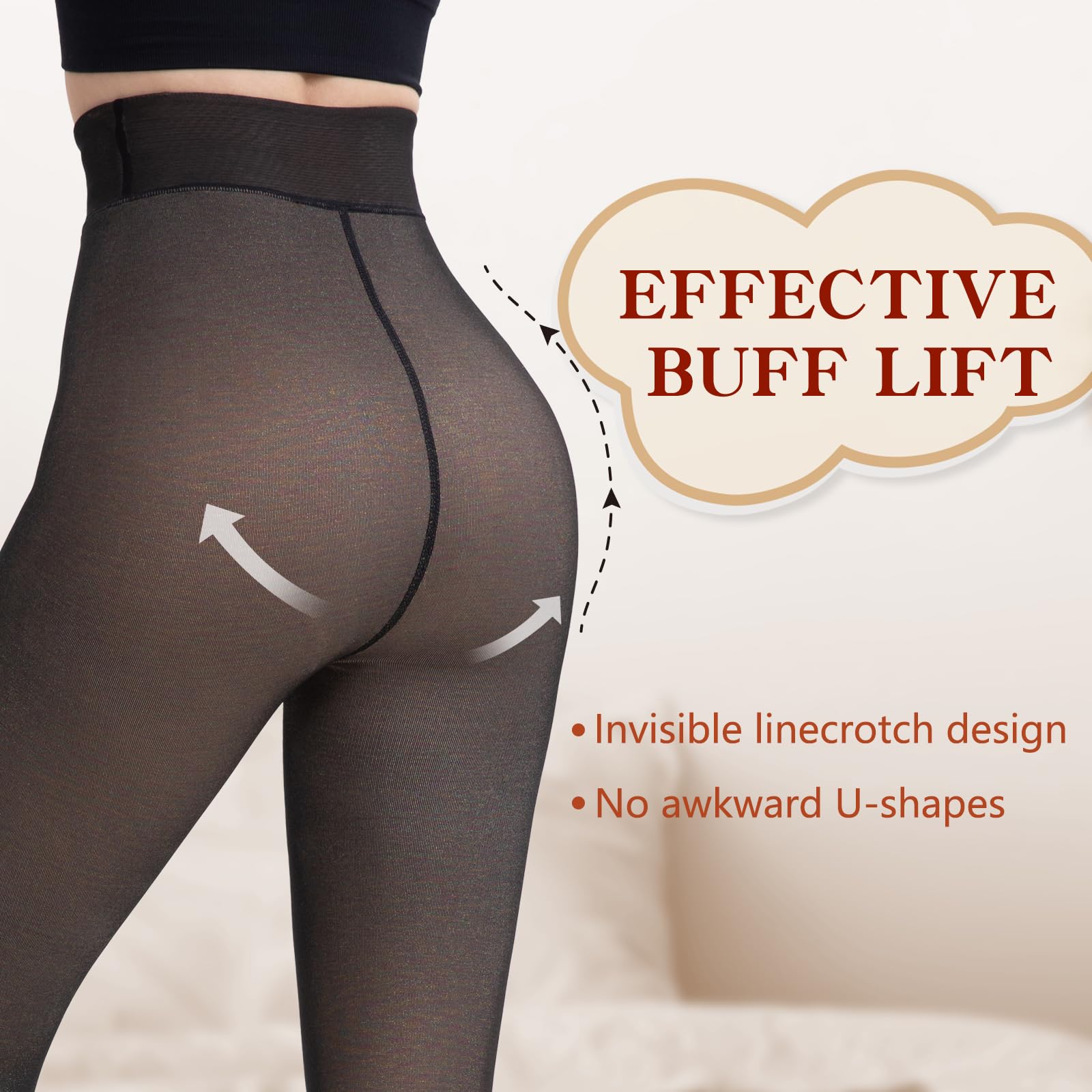 【Fake Translucent pantyhose】The warm tights for women have a black transparent layer on the outer layer and a soft and skin friendly fleece lining on the inner layer, giving a illusive translucency. The fleece lined sheer tights can easily match with any winter clothes, shape the perfect body curve while keeping warm, and is a must-have item in women's wardrobes