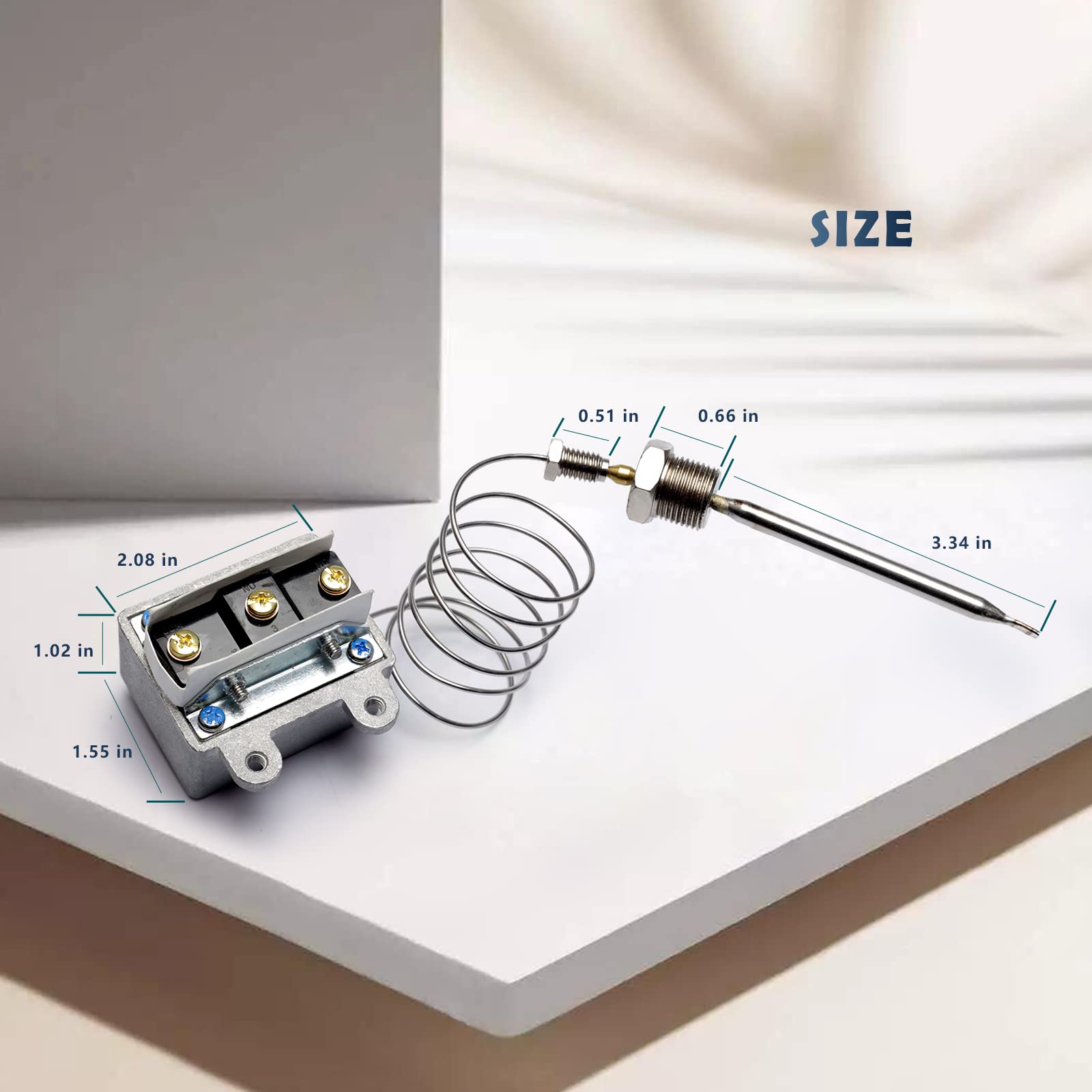 OEM Part Number: compatible with ATOSA PART# 301030005 replacement for robertshaw thermostat LCCM200300000 compatible with IMPERIAL 1177, replacement for Royal Range 3112 fits for Anets 42564 deep Fryer 1177 42564 P8905-02 high limit thermostat fryer switch for Fryer 3/8" Mpt Stuff Box, works on millivolt systems, not electric.Used on various commercial catering fryers.