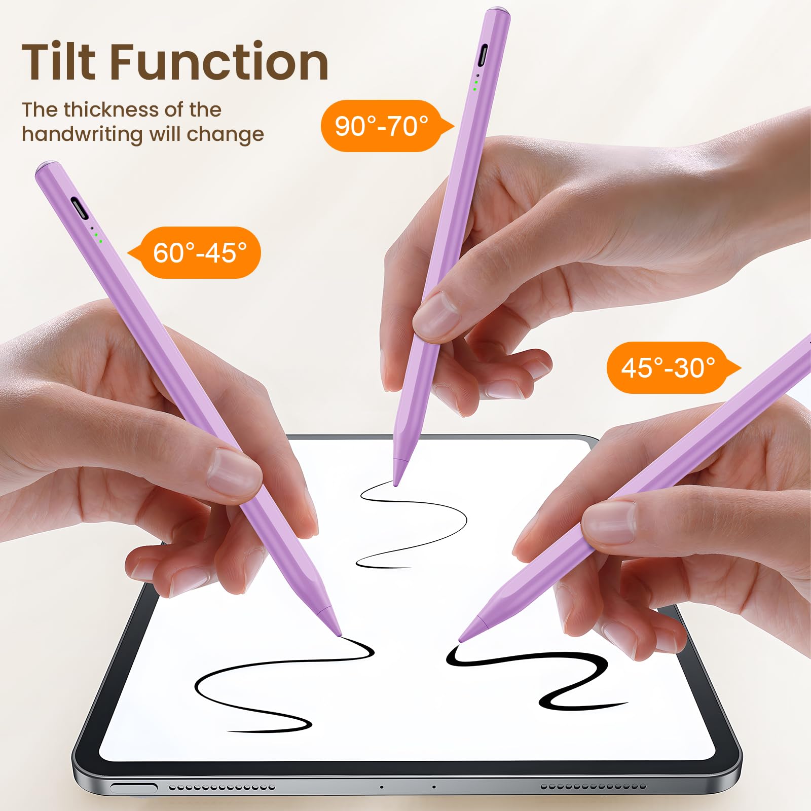 🖊【Tilt Sensitivity and Palm Rejection】: Hastraith ipad pen uses tilt pressure sensing technology, which can dynamically adjust the line thickness according to the different tilt angles of the pen side. The full-screen palm rejection function ensures that when using a capacitive pen, the finger or palm touching the screen will not cause accidental touches, while ensuring the smoothness and stability of writing.