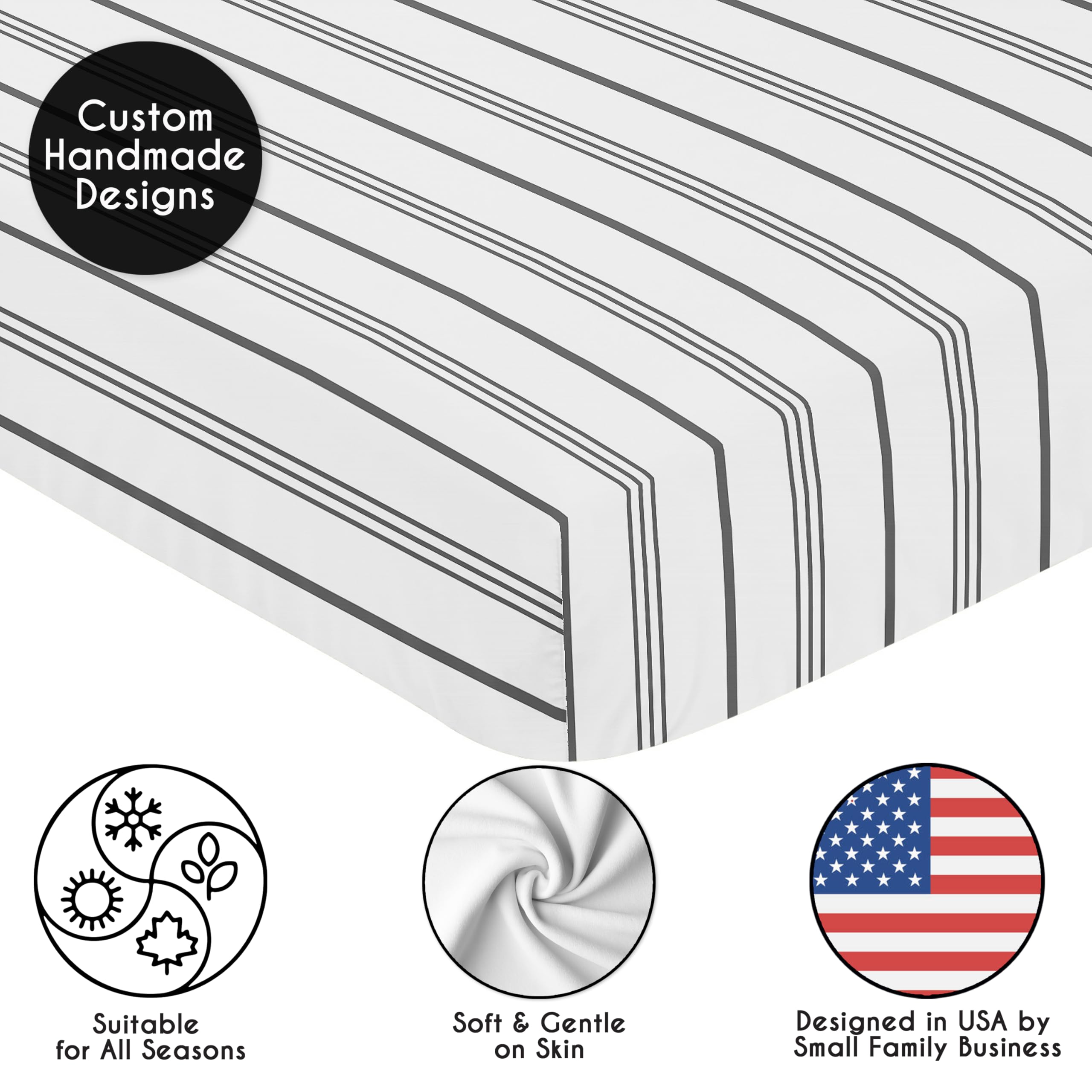 DESIGNED IN THE USA: By real parents who understand the need for comfort, practicality, and style. Sweet Jojo Designs is a small, women owned business. The mom's on our team know a crib mattress sheet is first priority for your baby essentials to ensure a restful night of sleep. We use top fabrics and designs to create soft crib sheets that are stretchy and comfortable for your infant or toddler. We've studied the latest trends in grey striped crib sheets neutral to bring you the finest product.