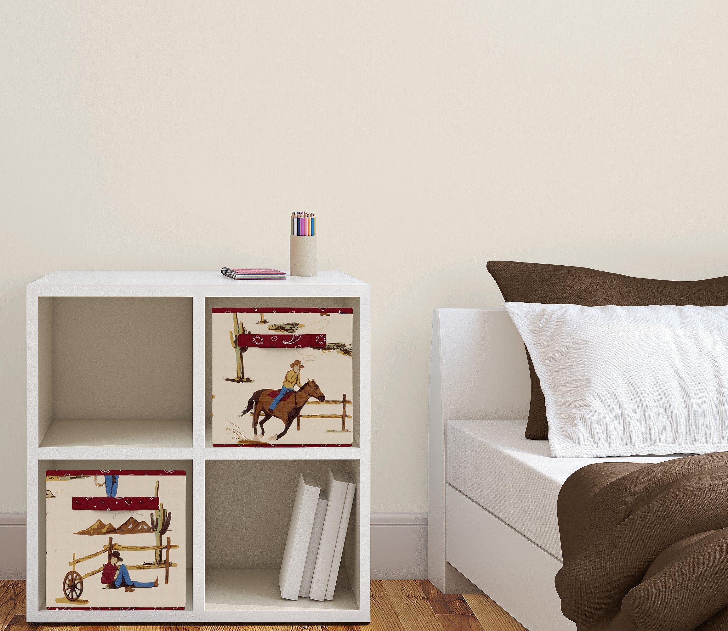 Features a western cowboy print on the outside and a red bandana print on the inside